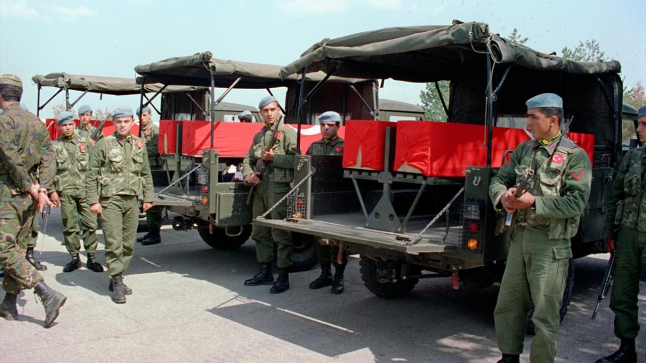 Türk Silahlı Kuvvetleri, Bingöl-Elazığ kara yolunda 24 Mayıs 1993`te sivil kıyafetli ve silahsız 33 askerin usta birliklerine giderken PKK`lı teröristlerin saldırısında şehit edilmesinin ardından Bingöl, Elazığ ve Diyarbakır`ın dağlık bölgelerinde terör örgütü PKK`ya karşı geniş çaplı bir operasyon başlattı. (Arşiv-24.05.1993)