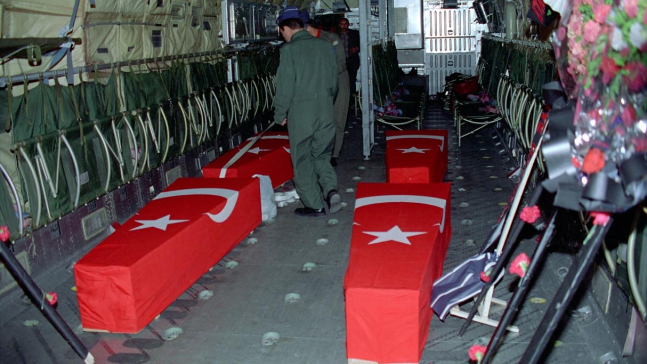 Şehit askerlerin naaşları askeri uçakla memleketlerine gönderildi. (Arşiv-27.05.1993)