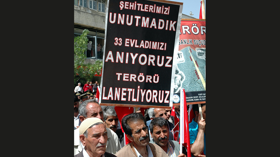 Bingöl-Elazığ kara yolunda 24 Mayıs 1993`te usta birliklerine giderken PKK`lı teröristlerin saldırısında şehit olan sivil kıyafetli ve silahsız 33 er, Bingöl`de düzenlenen törenle anıldı. (Arşiv-24.05.2007)