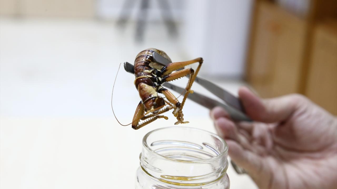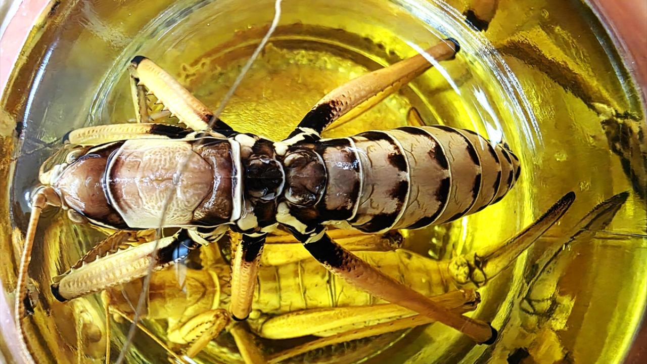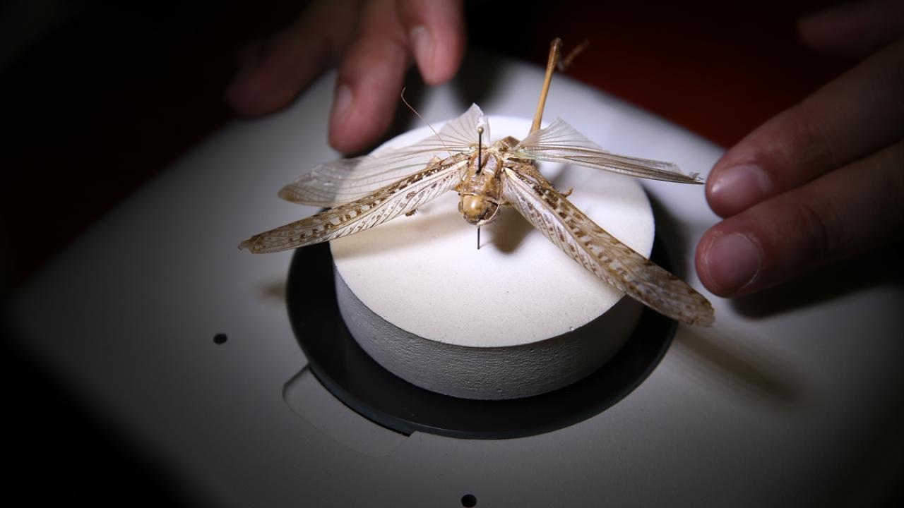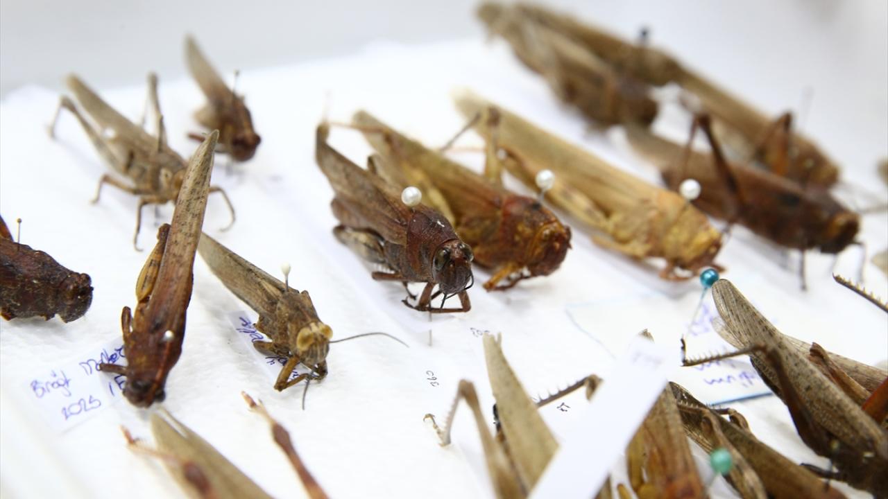 Ziraat Fakültesi Entomoloji Laboratuvarı`nda muhafaza edilen çekirgeler, renkleri ve büyüklükleriyle dikkati çekiyor.