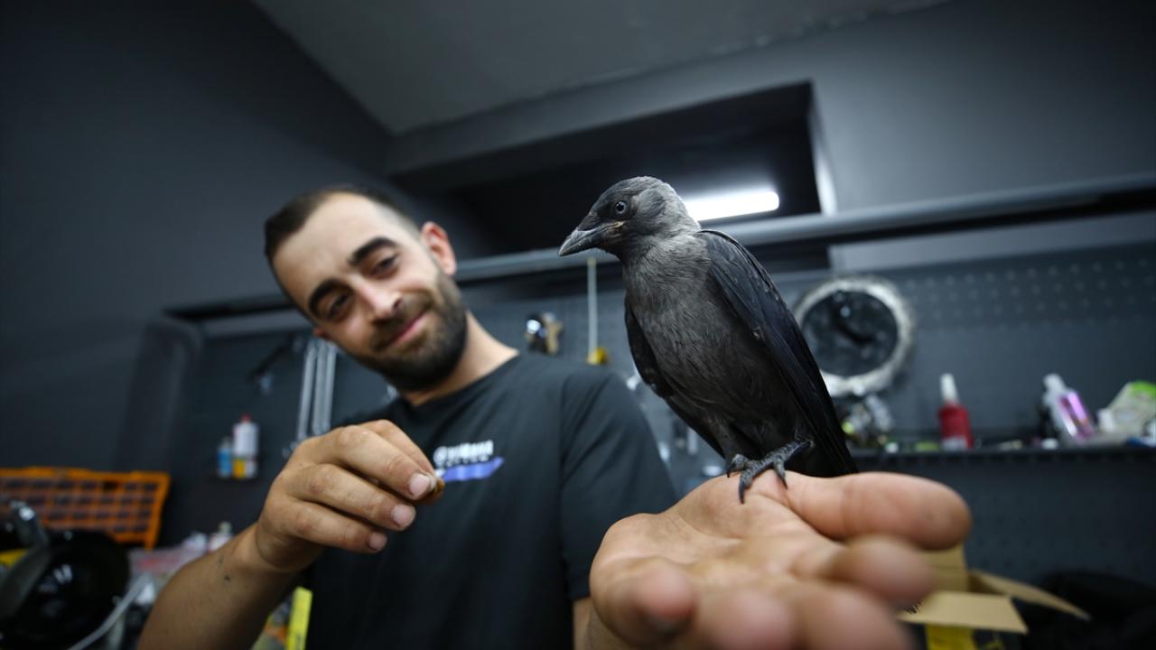 Selahaddin-i Eyyubi Mahallesi`nde motosiklet yetkili servisi bulunan Aksoy, yaklaşık 1,5 ay önce bir arkadaşından kent merkezinde açlıktan ve bakımsızlıktan ölmek üzere olan bir yavru karga olduğunu öğrendi.