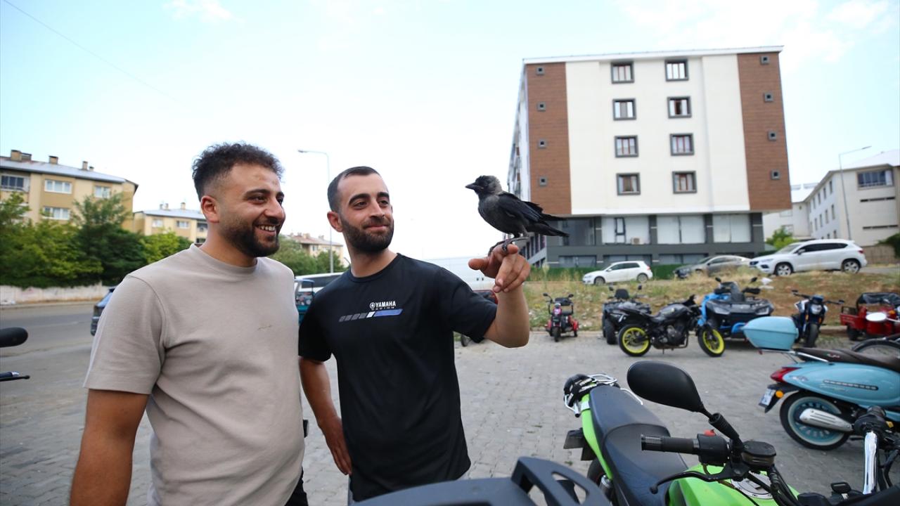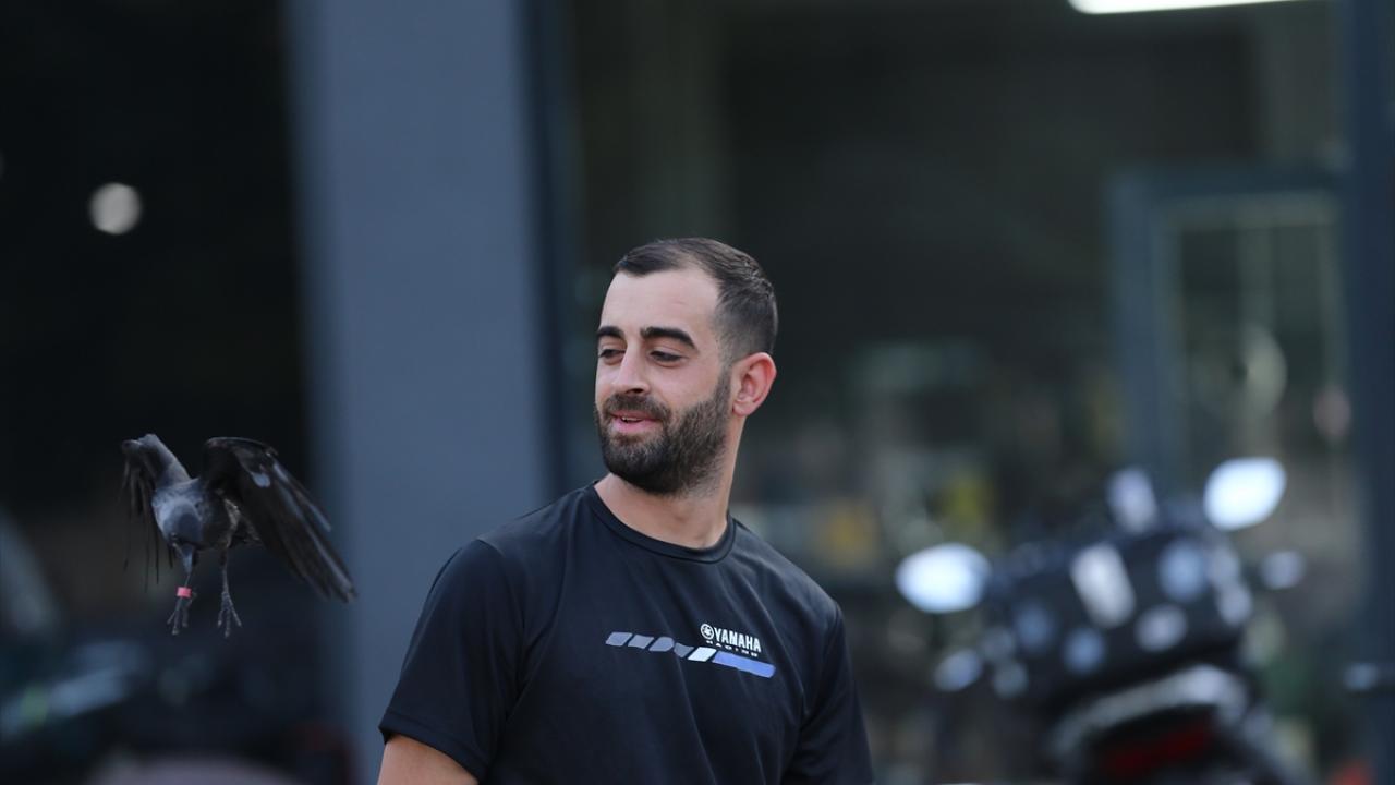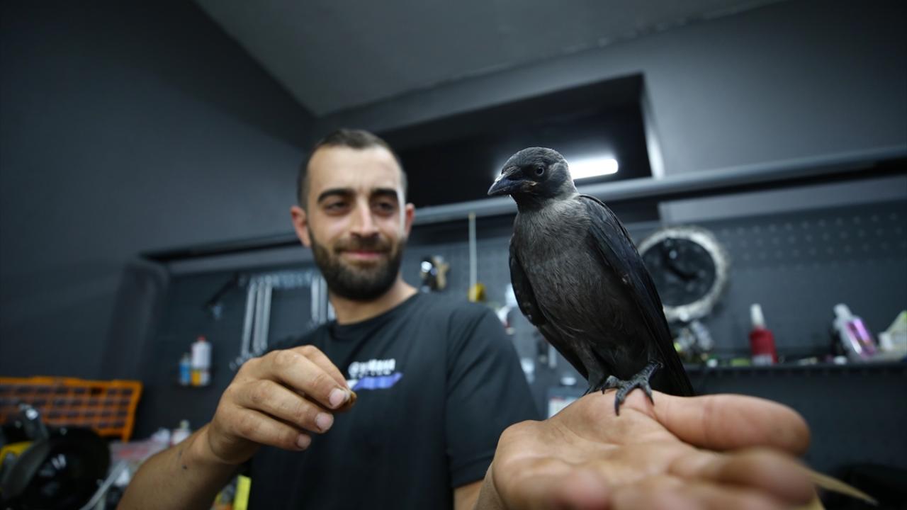 Bingöllü motosiklet teknisyeni hayata bağladığı karga "Şimşek" ile dost oldu