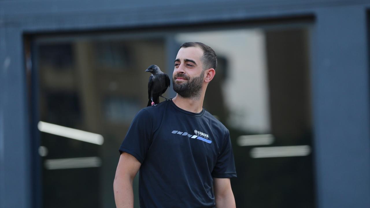 Mesut Aksoy, yıllardır bir karga beslemeyi düşündüğünü, arkadaşının bulduğu karga ile bunu gerçekleştirdiğini söyledi.