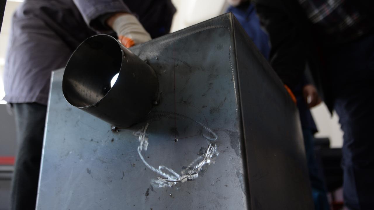Bingöl Mesleki Teknik ve Anadolu Lisesinde öğretmen ve gönüllü ustalardan oluşan ekip, "asrın felaketi" olarak nitelenen depremlerden etkilenen kentlere gönderilmesi için çadır sobası yapıyor.