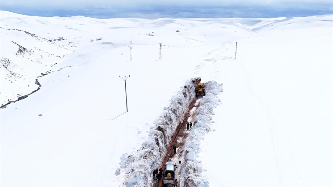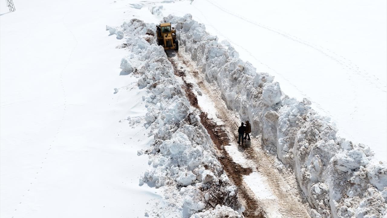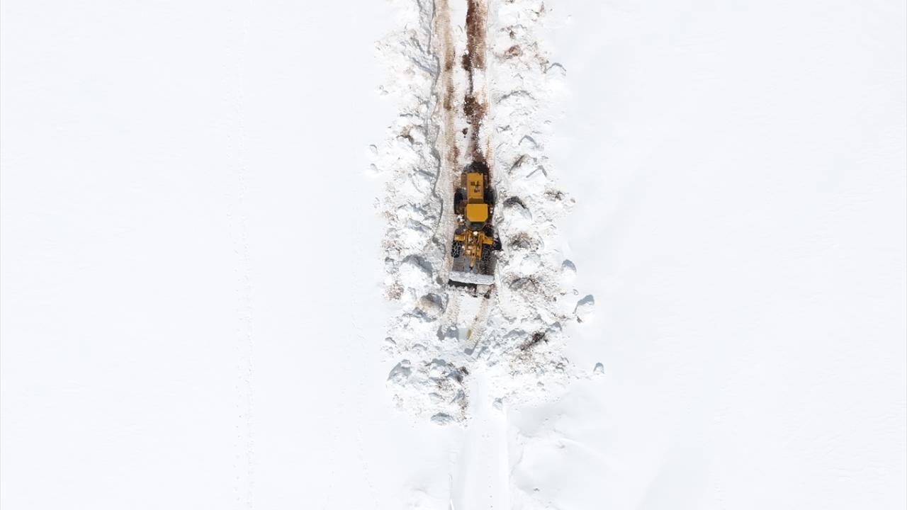 Kış boyunca defalarca açılan, yoğun kar yağışı ve tipinin de etkisiyle yeniden ulaşıma kapanan yolda ekipler ulaşımın sağlanması için çalışıyor.