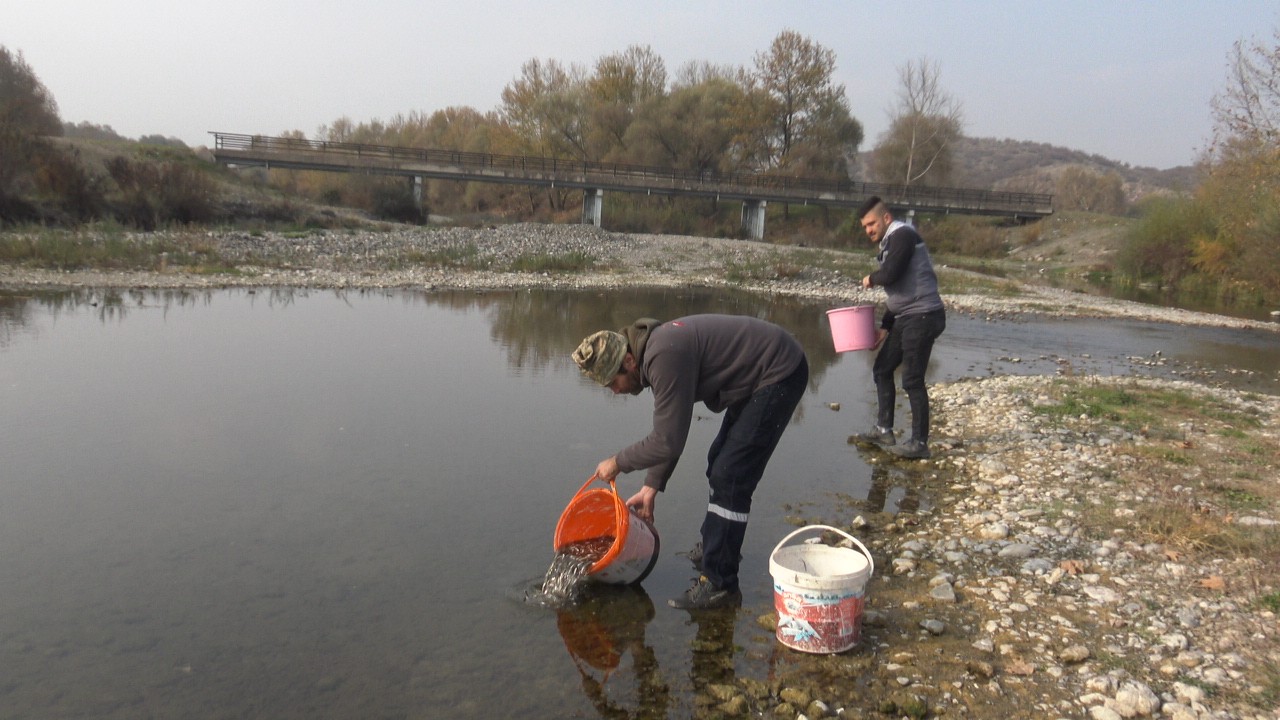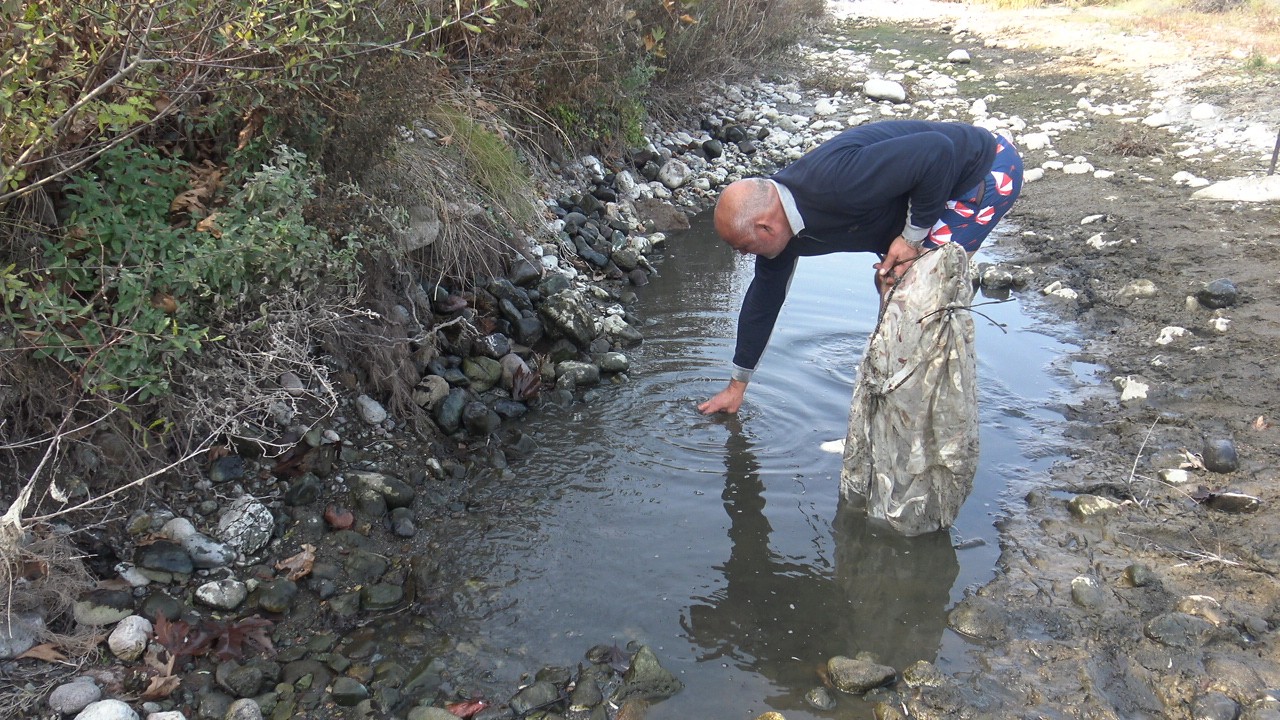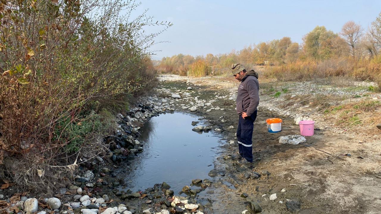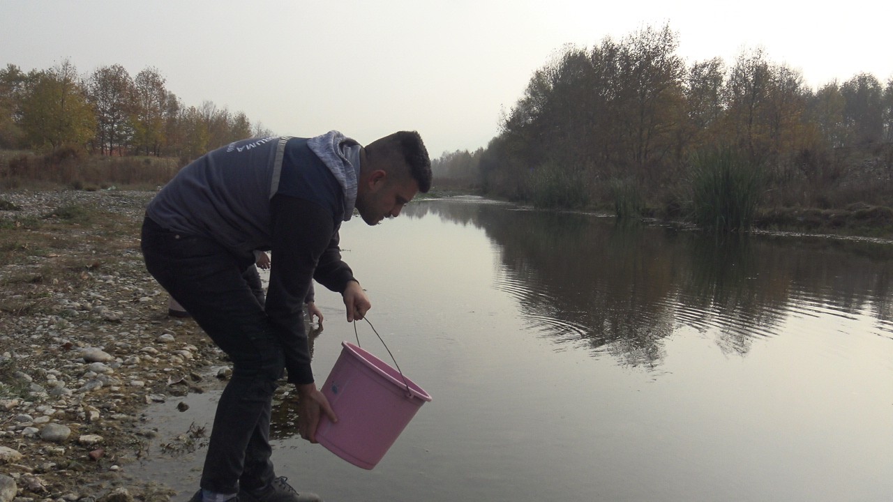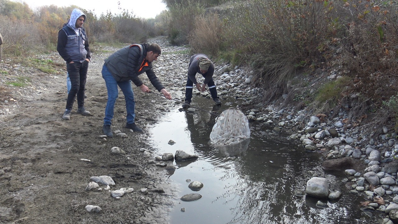 Yetkililerle birlikte yapılan incelemeler sonrasında belediye personeli ve Çıkrıkçı’nın yardımı ile balıklar bulunduğu alandan kovalarla alınarak dere yatağına taşındı.
