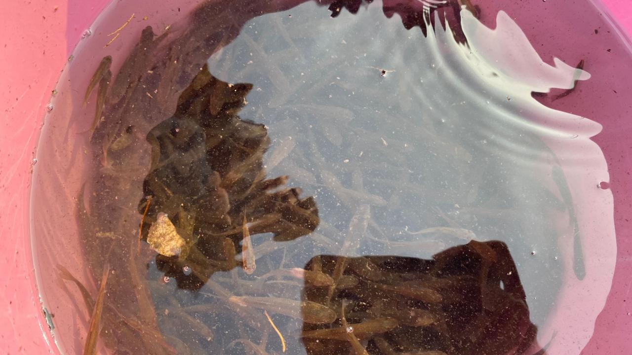 Balıkesir’in Sındırgı ilçesinde suların çekilmesi ile birlikte Karagür çayında binlerce balık yavrusu su birikintisinde kaldı. Kozlu Mahallesi sakinlerinden Adnan Çıkrıkçı’nın dikkati binlerce balığı telef olmaktan kurtardı.