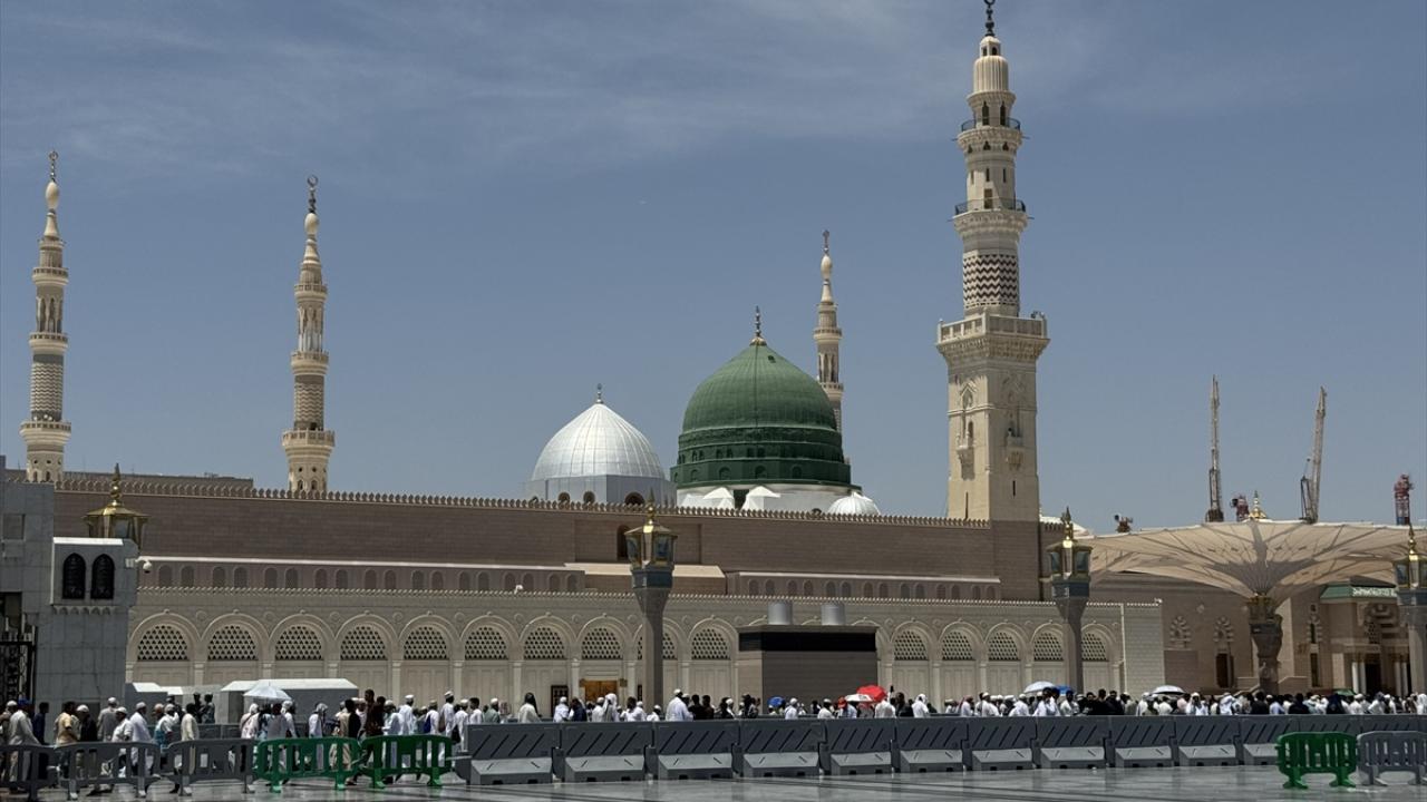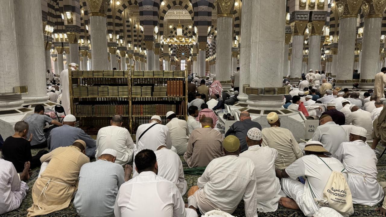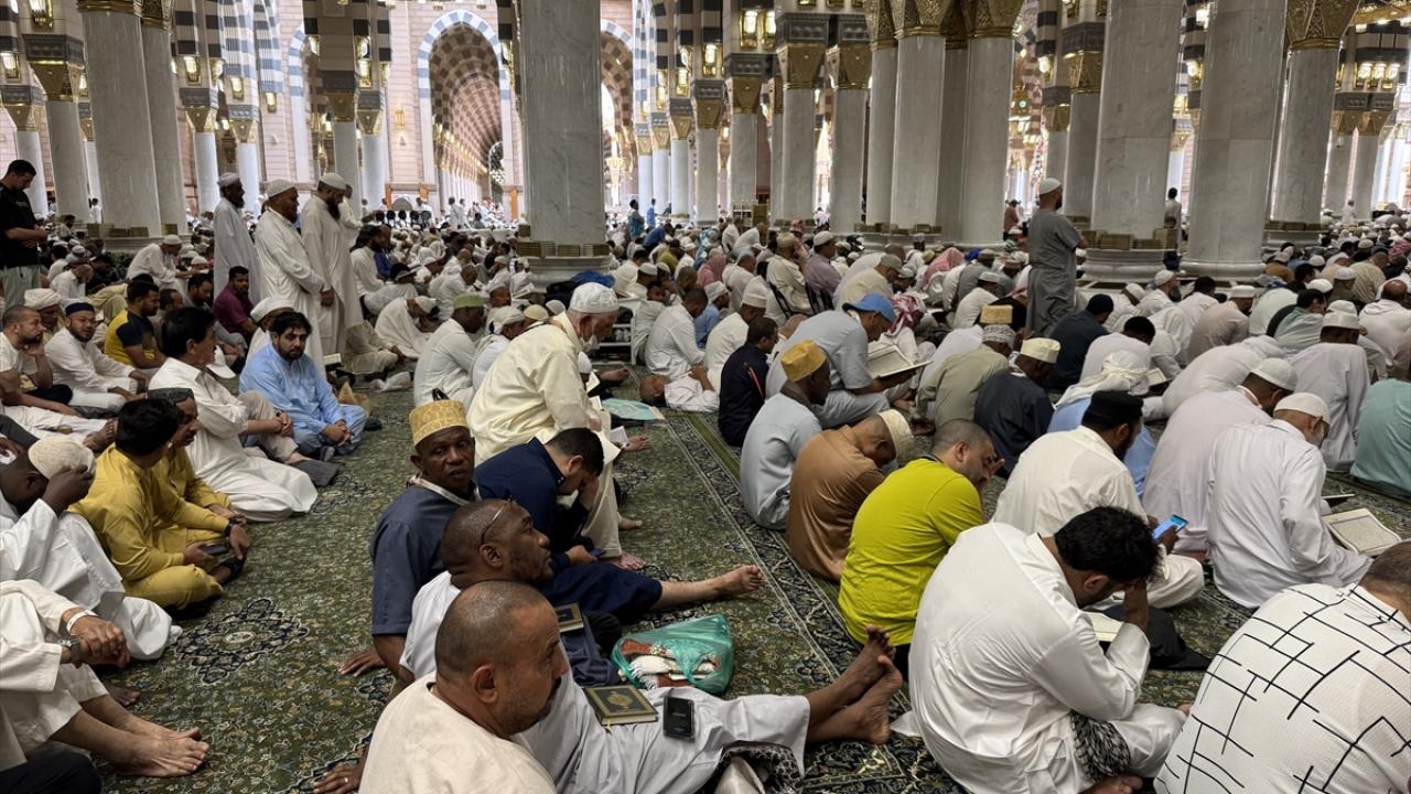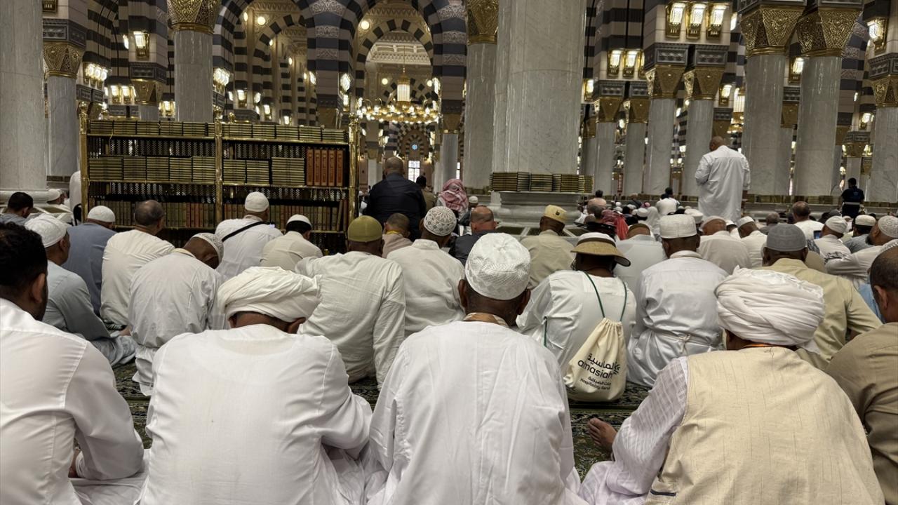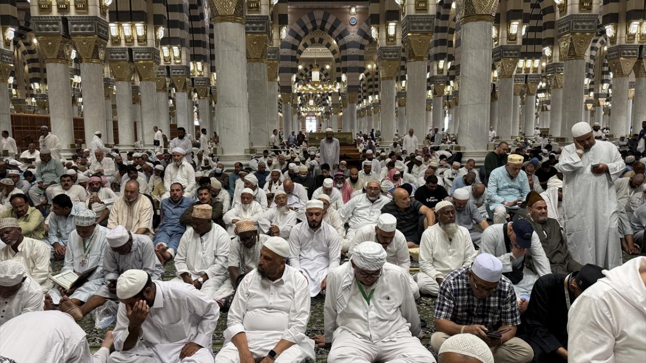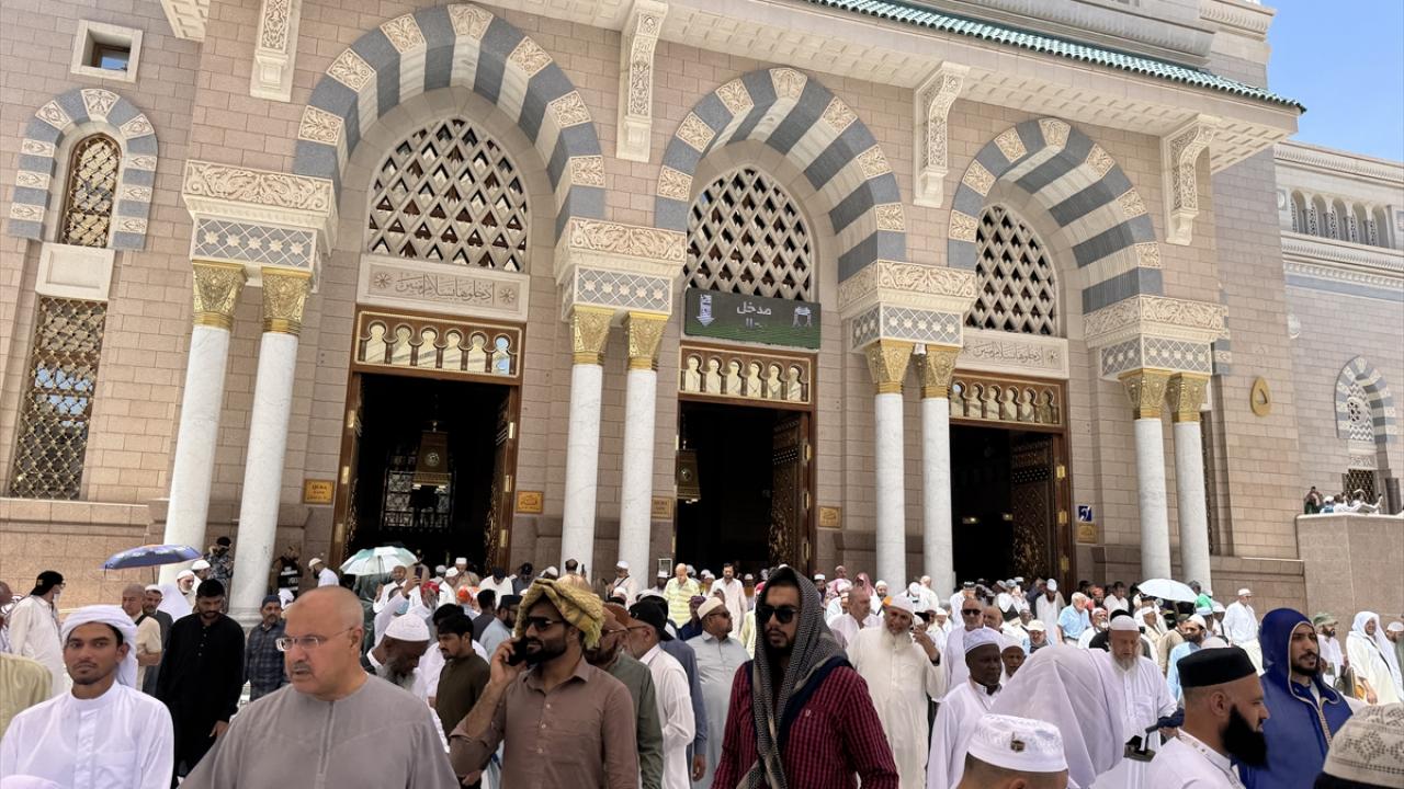 Medine`deki günlerini ibadet ile mübarek mekan ve alanları ziyaret ederek geçiren hacılar, cuma namazını kılmak üzere günün erken saatlerinden itibaren Mescid-i Nebevi`ye geldi.