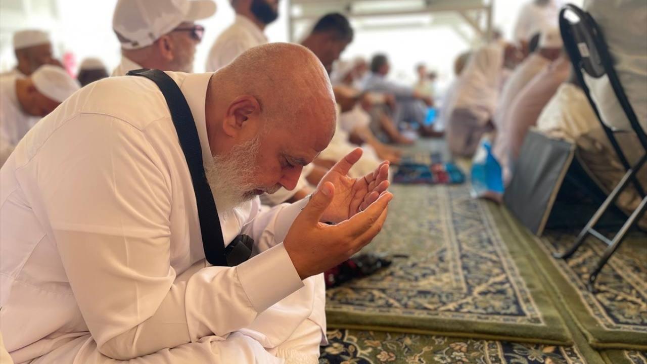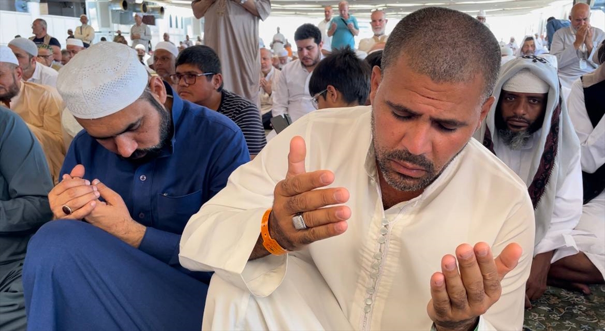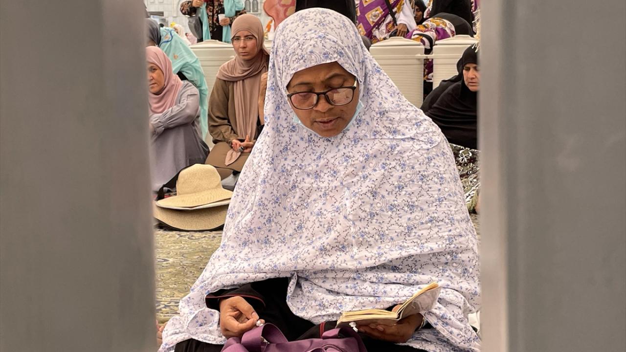 Hacılar, namaz vaktini beklerken Kur`an okuyup dua etti.