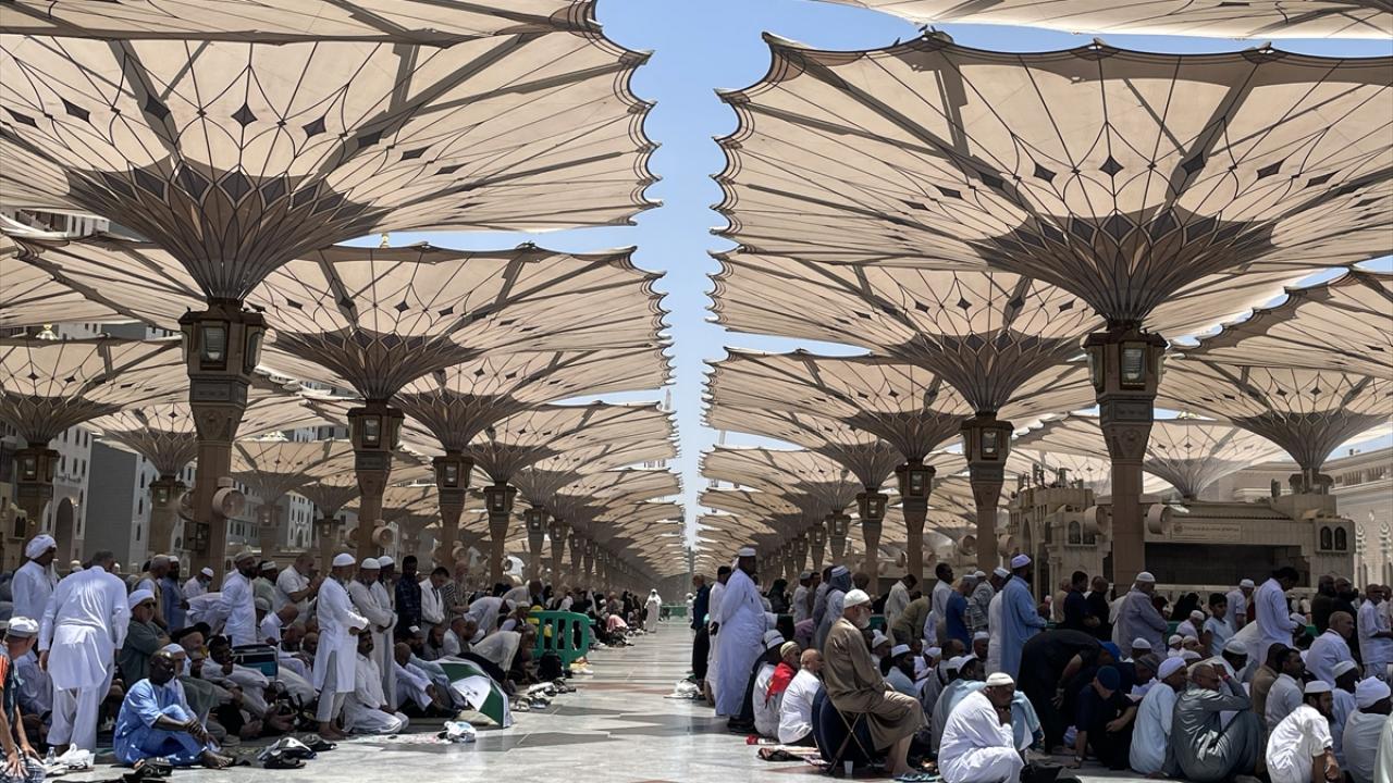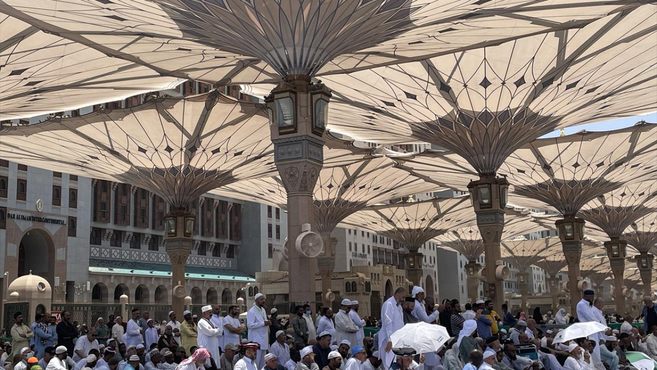 Cuma namazı vaktinin yaklaşmasıyla Mescid-i Nebevi ve çevresinde yoğunluk yaşanırken, Mescid-i Nebevi`nin içinde ve çevresinde yüz binlerce hacı, saf tutarak cuma namazını eda etti.