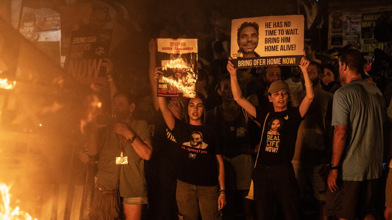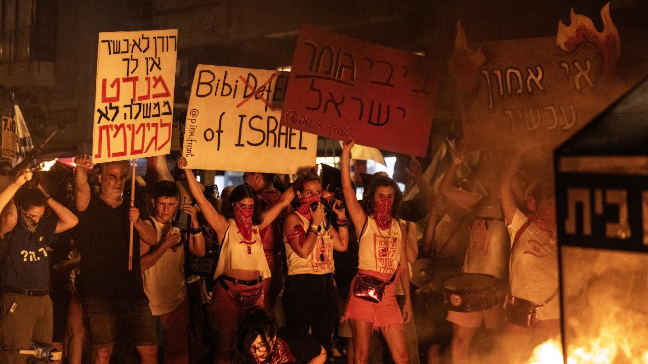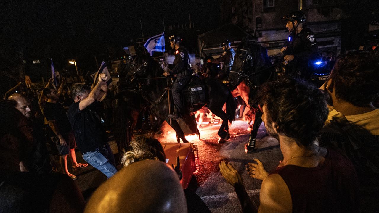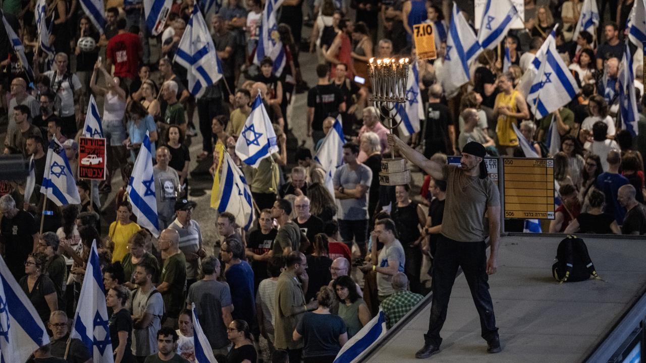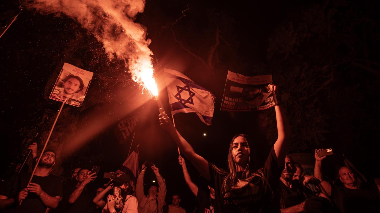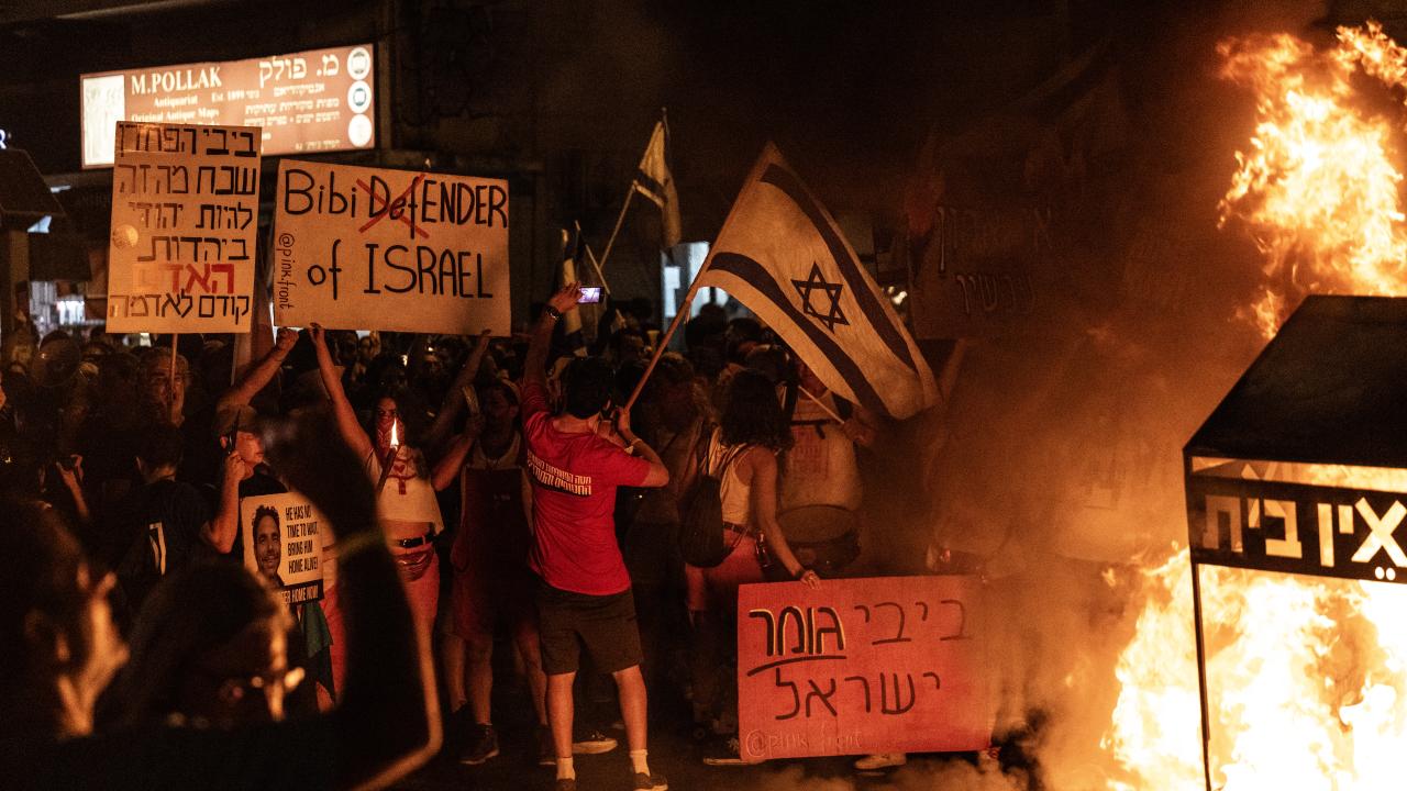 İsrailliler, Gazze Şeridi'ndeki İsrailli esirlerin geri getirilmesi ve Başbakan Binyamin Netanyahu hükümetinin istifası talebiyle ülke genelinde bu cumartesi de gösteriler düzenledi. Tel Aviv'deki Savunma Bakanlığı önünde toplanan binlerce gösterici, ellerinde İsrail bayrakları ve Netanyahu ve hükümetindeki siyasetçiler aleyhinde pankart, afiş ve dövizler taşıdı.