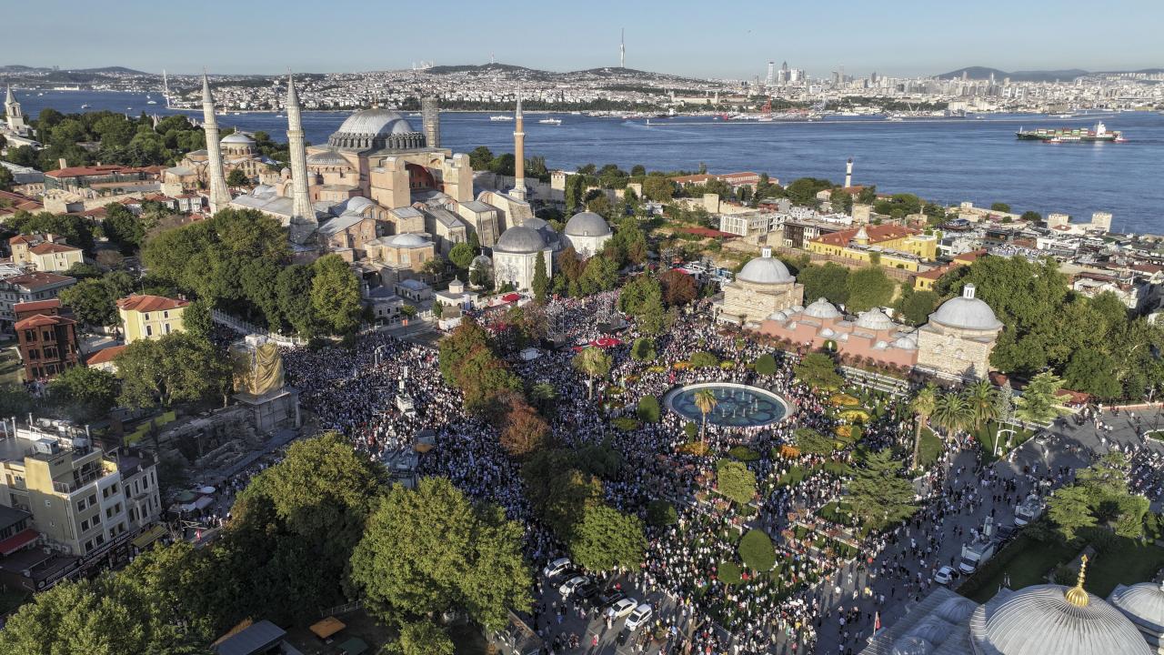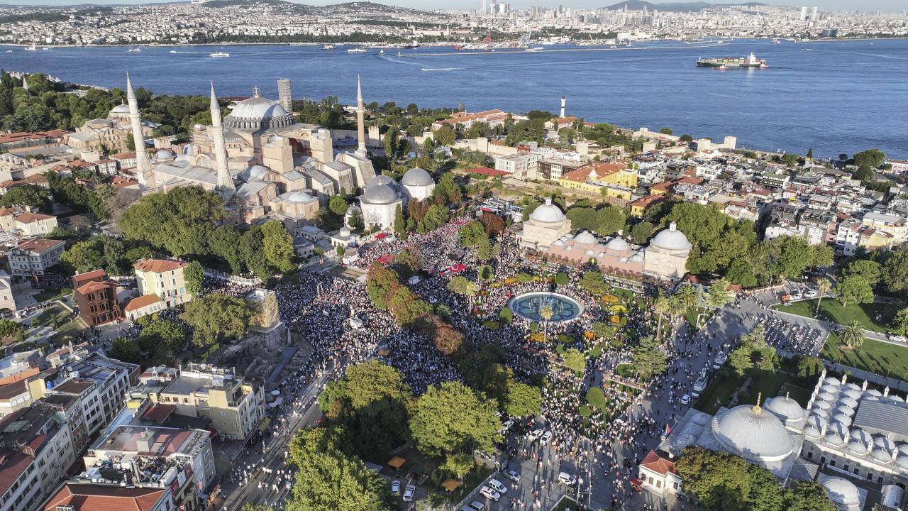Vatandaşların bir araya geldiği mitingde kalabalık, Ayasofya Meydanı`ndan çevredeki cadde ve sokaklara taştı.