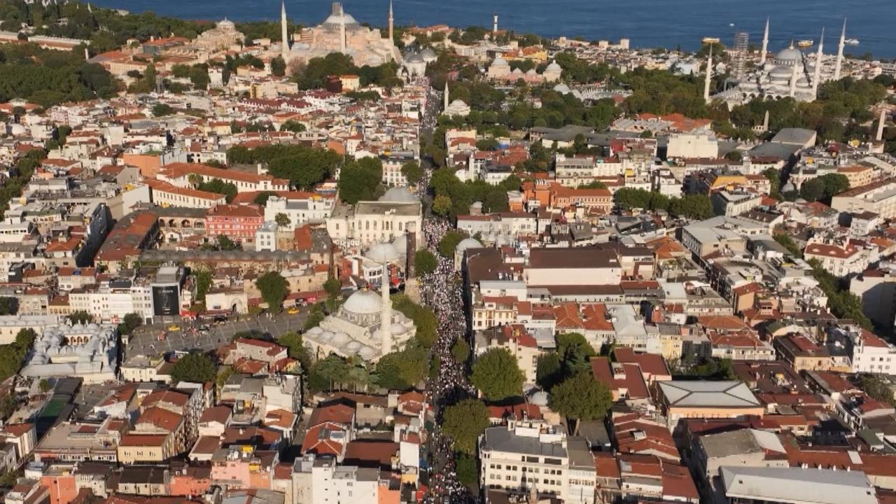 Alana doğru yürüyüşte Eminönü, Gülhane Parkı, Küçükayasofya civarındaki cadde ve ara sokaklarda vatandaşlar yoğunluk oluşturdu.