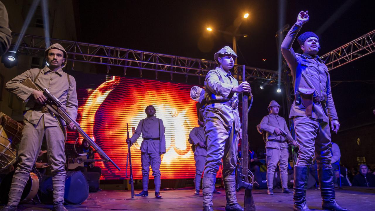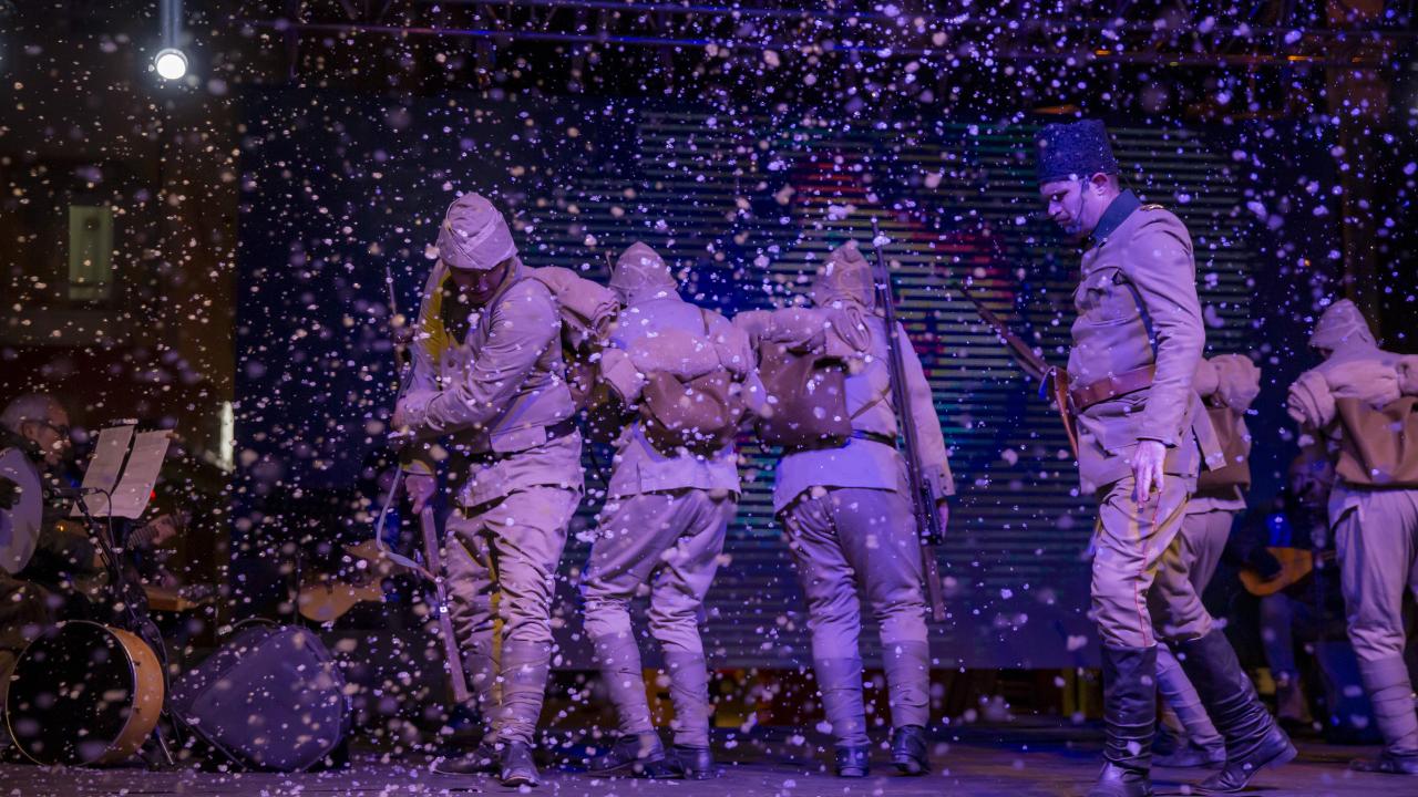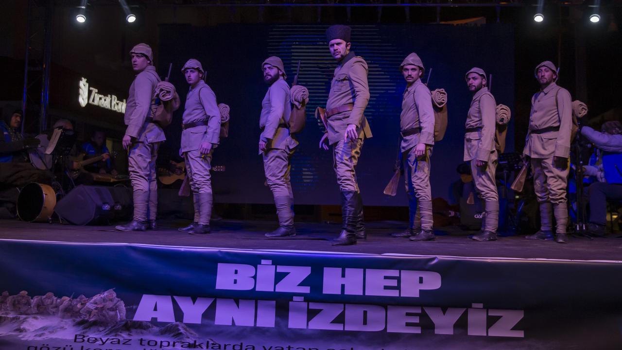 Çanakkale Sanat Tiyatrosu tarafından sahnelenen ve yönetmenliğini Abdülkadir Katra`nın yaptığı "Vatan Sağ Olsun Sarıkamış" oyunu, alanda kurulan platformda sahnelendi.