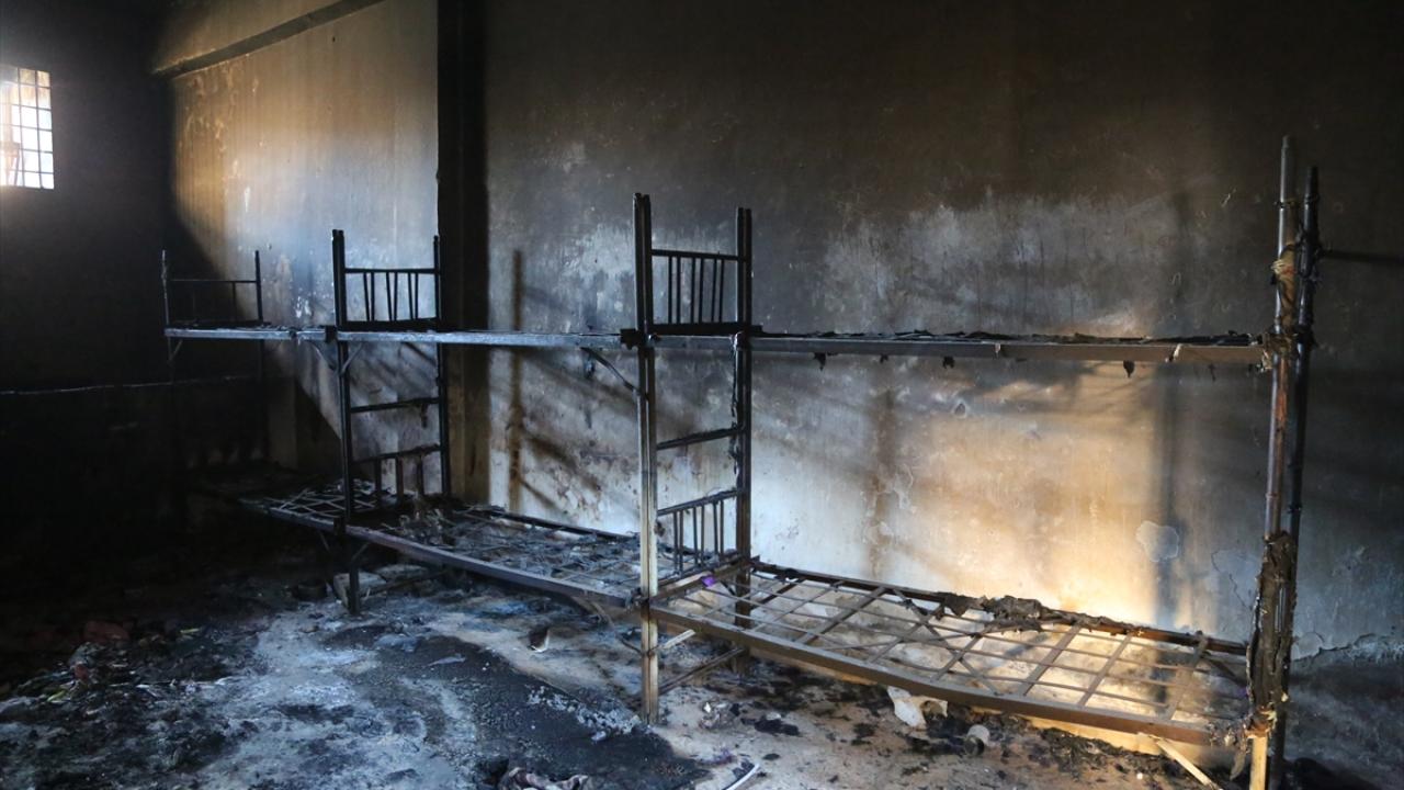 Avlusunda çürümüş polis araçlarının bulunduğu hapishanede yanmış ranzalar, is kaplı duvarlar, çöplüğe dönüşmüş hücre ve koğuşlar dikkati çekiyor.