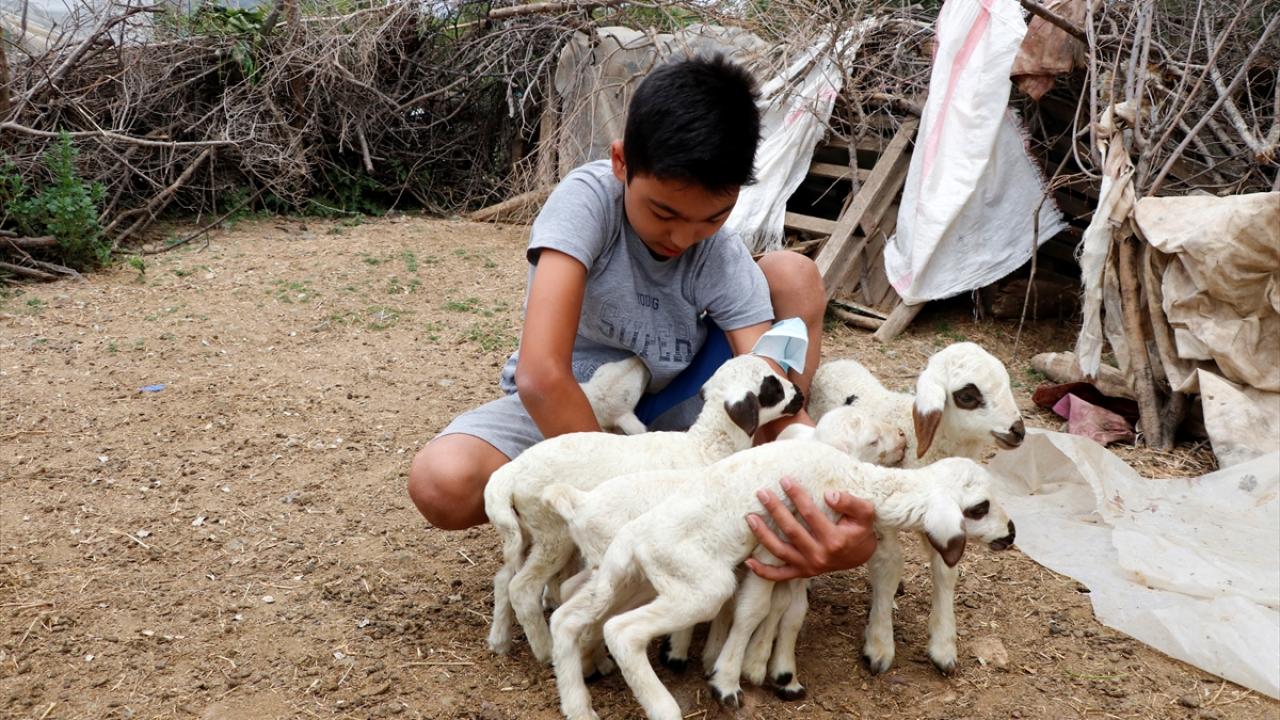 Koyunun daha önce iki kez ikiz, bir kez de tek kuzu doğurduğunu anlatan Demirci, "Dördüncü doğumunda yediz doğurdu. En fazla dördüz doğuran koyunum vardı. Bölgede de daha önce yediz doğuran koyun olduğunu duymamıştık. Koyunlarda süt olmadığı için keçilerden sağdığım sütle kuzuları beslemeye çalışıyoruz" ifadesini kullandı.