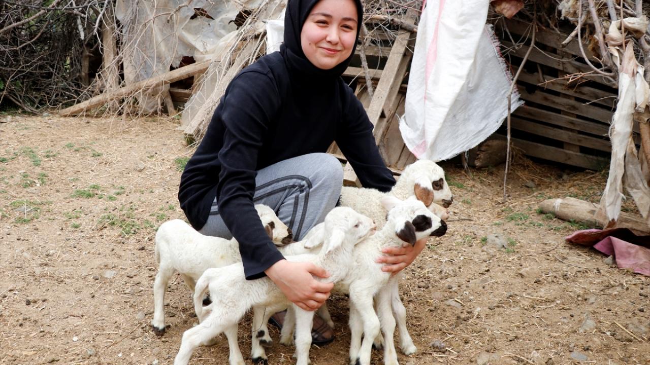 Kuzulardan biri doğumdan iki gün sonra telef oldu. Bir kuzuyu beslemesi için kızlarına veren Demirci çifti, annelerinin bakmakta güçlük çektiği 5 kuzuyu da biberonla besliyor.