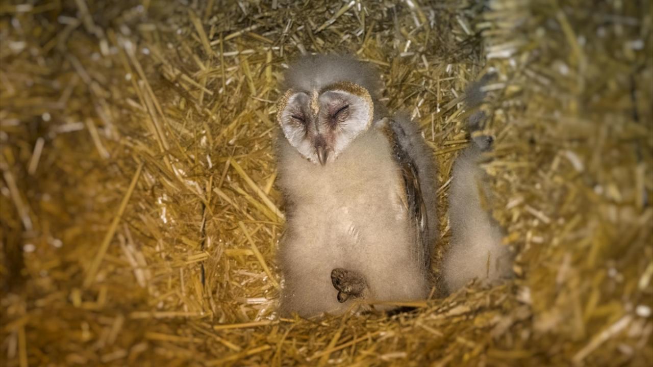 Samanlıktaki 2 ebeveyn 4 yavruyu fark eden çiftlik sahipleri, yavruların zarar görmemesi için yapının o kısmındaki samanları kaldırmadı.