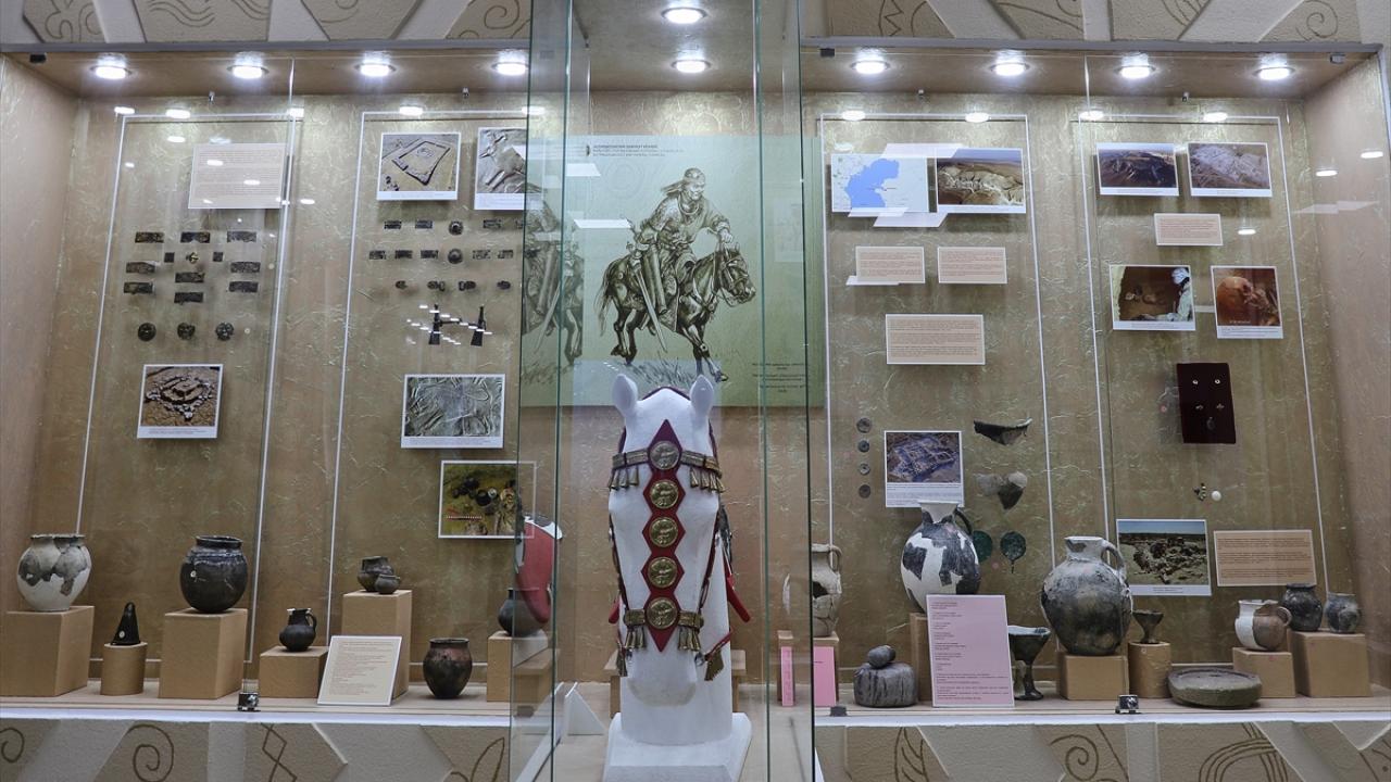 Kazakistan'ın Hazar Denizi kıyısındaki Mangistau eyaletinin idari merkezi olan Aktau şehrindeki Abiş Kekilbayev Bölge Tanıtımı Müzesi'nde, şimdiye kadar yapılan kazı çalışmalarında eşi görülmeyen 2 bin yıllık Hun askerine ait saf altın ve gümüşten iş