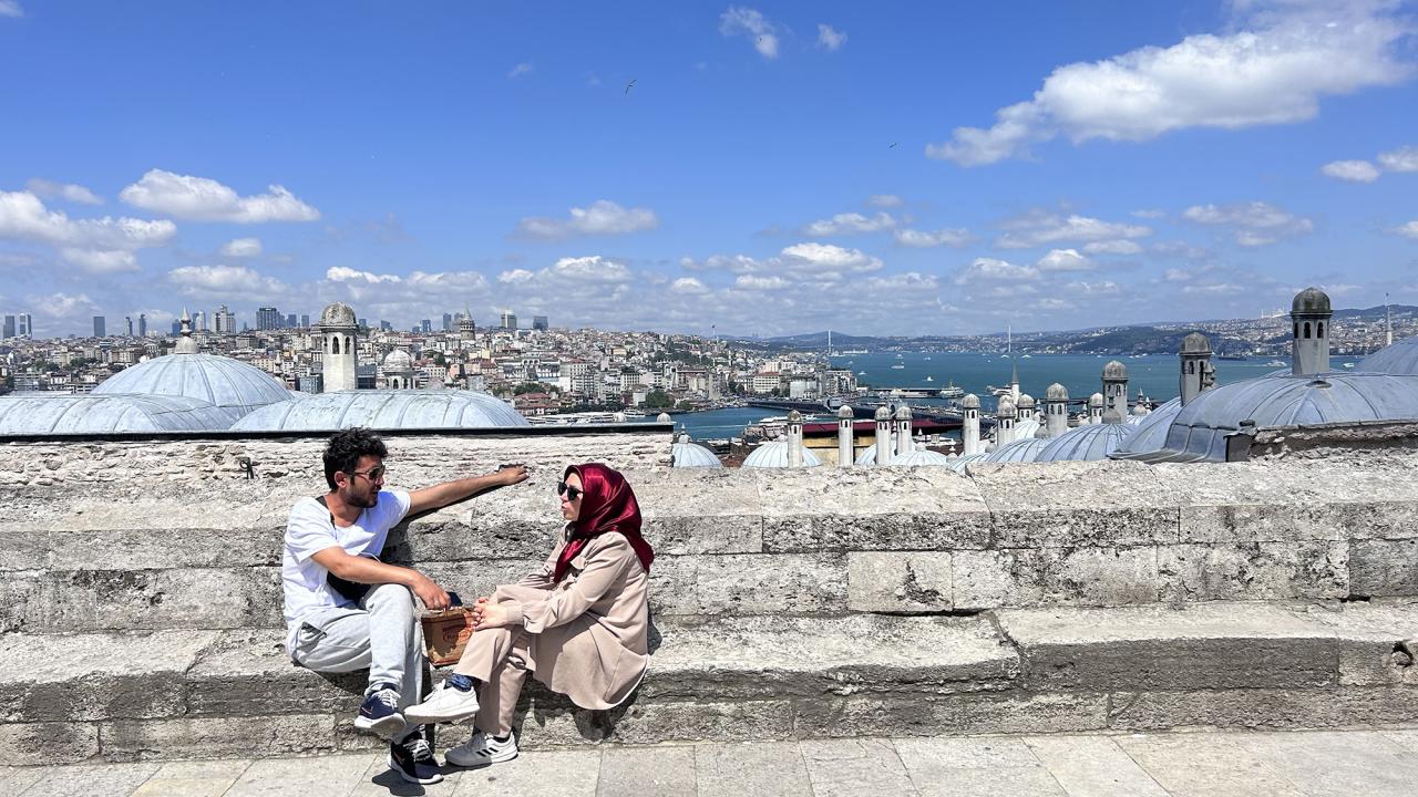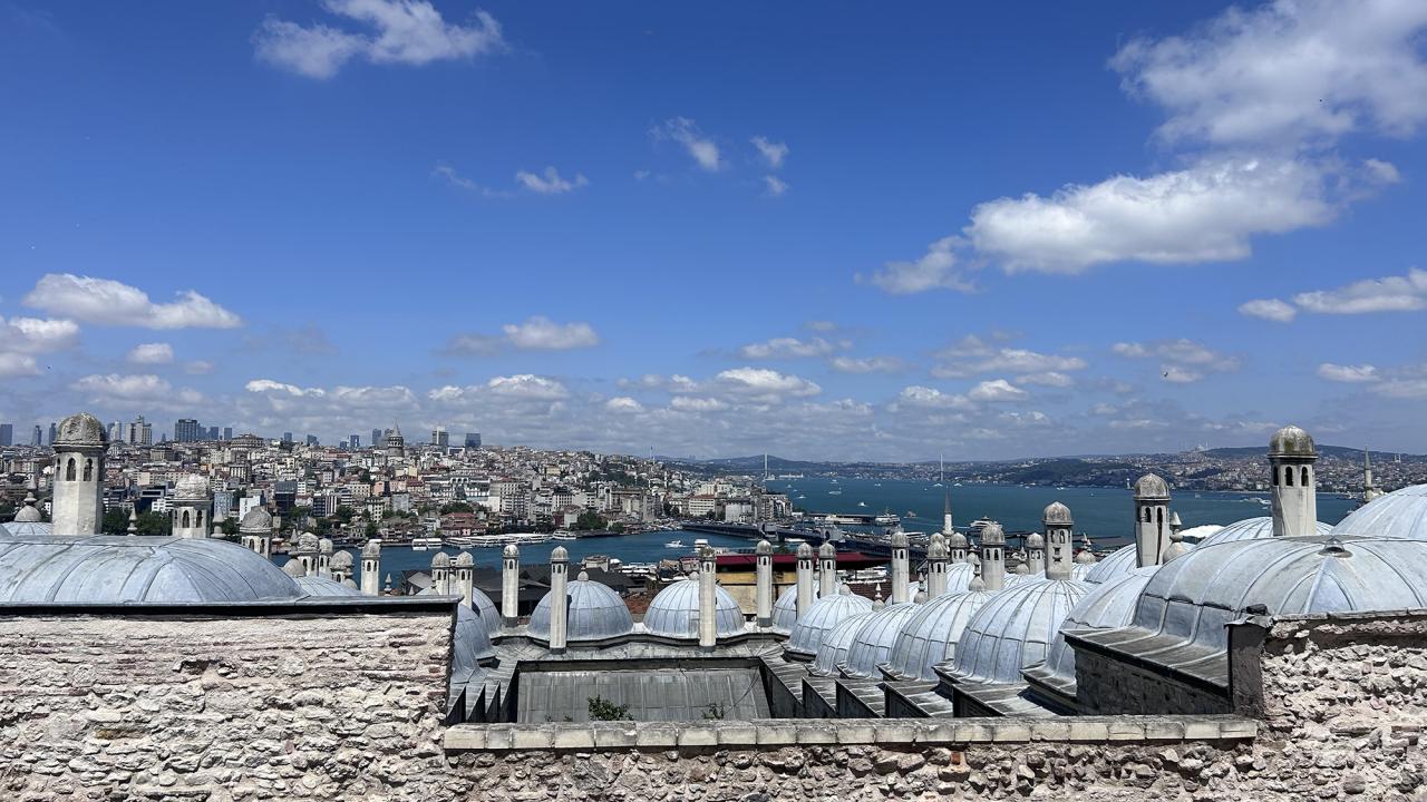 Her gün binlerce turiste de ev sahipliği yapan cami, İstanbul`un en yüksek tepelerinden biri üzerine kurulu.