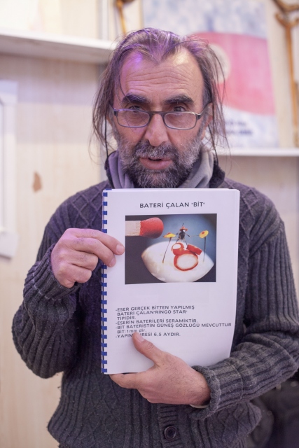 "Dünyadaki üç mikro heykeltıraştan biri" olarak tanınan Necati Korkmaz, Klasik Türk hat sanatının en büyük eserlerinden 25'ini yarım mercimek tanelerinin üzerine işledikten sonra bir santimetrekare boyutunda katalog yaptı.