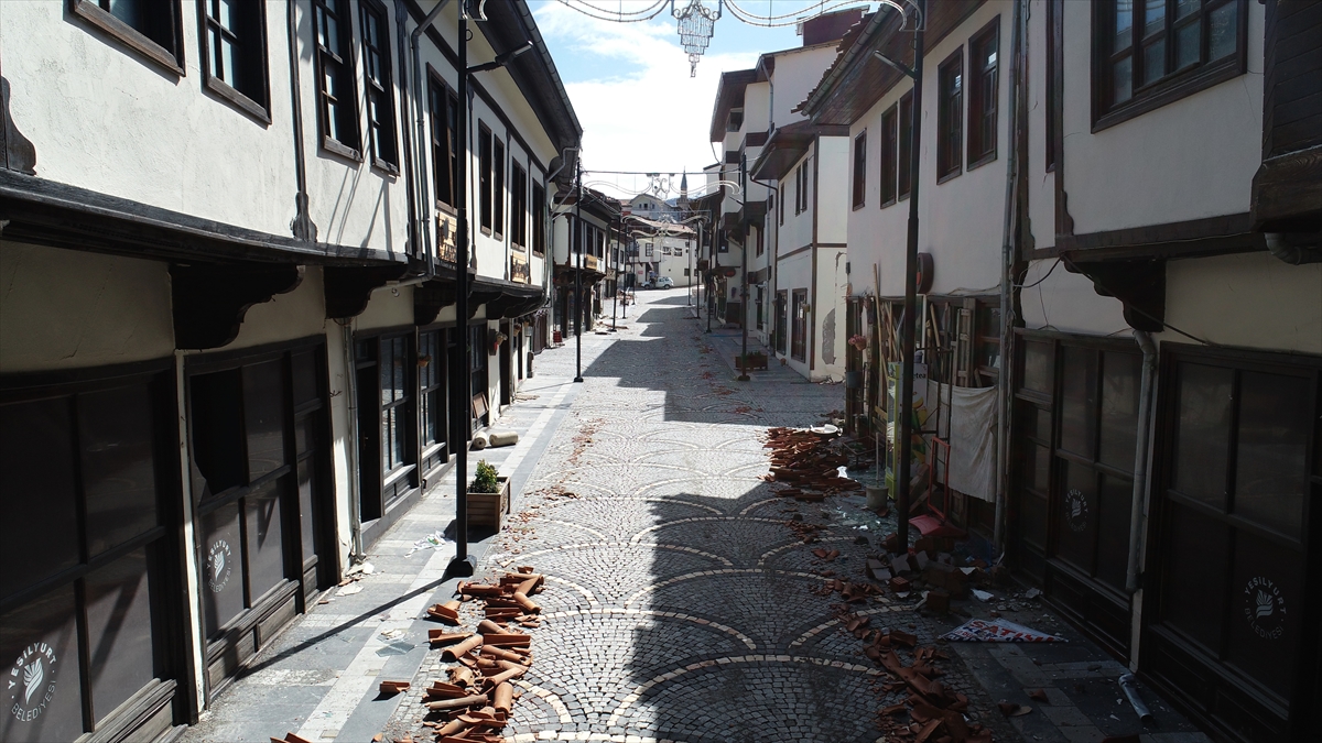 Restorasyon projelerinin uygulandığı Lezzet Caddesi`ndeki tarihi Yeşilyurt konakları ile müzelerde de hasarın oluştuğu ilçede enkaz kaldırma çalışmaları sürüyor.