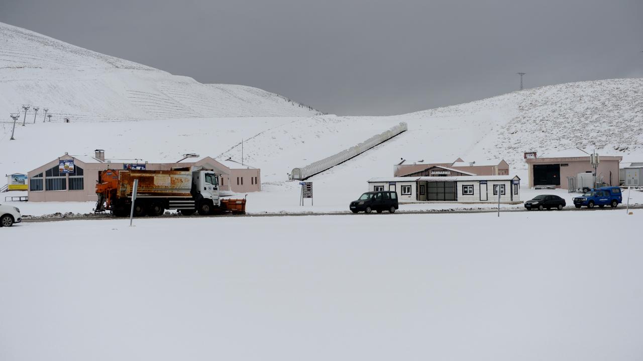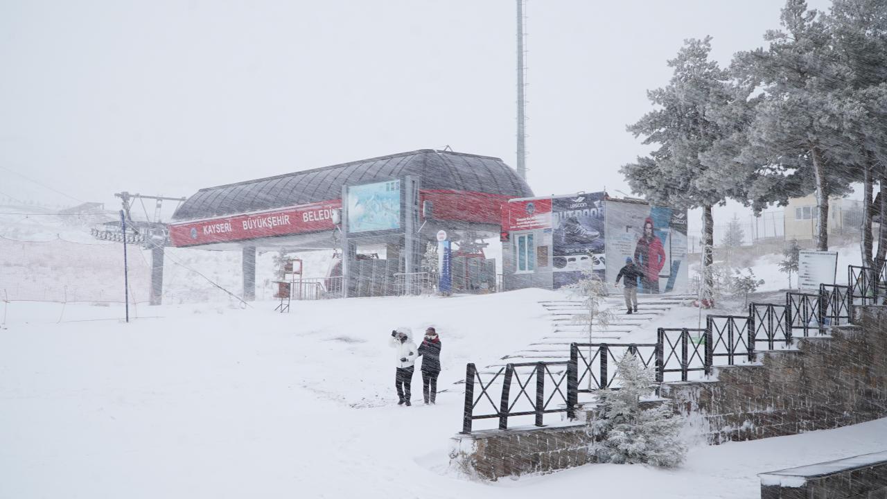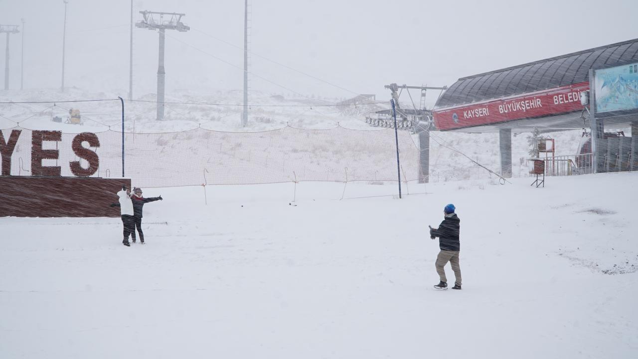 Erciyes Dağı`nın yüksek kesimlerinde gece saatlerinde başlayan kar yağışı, gün içinde de devam ederek kayak merkezinin bulunduğu alanı beyaza bürüdü.