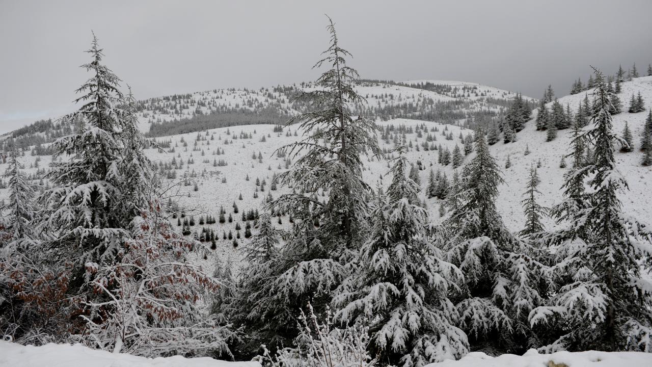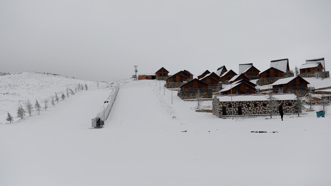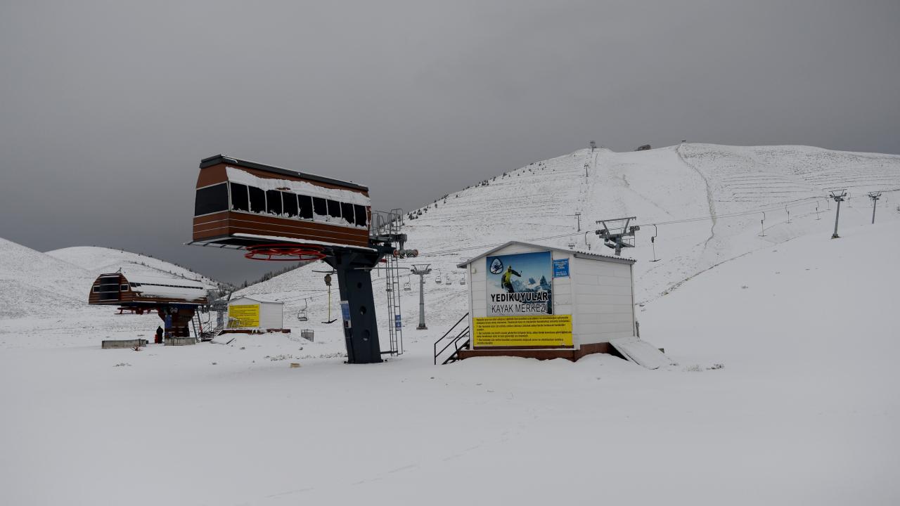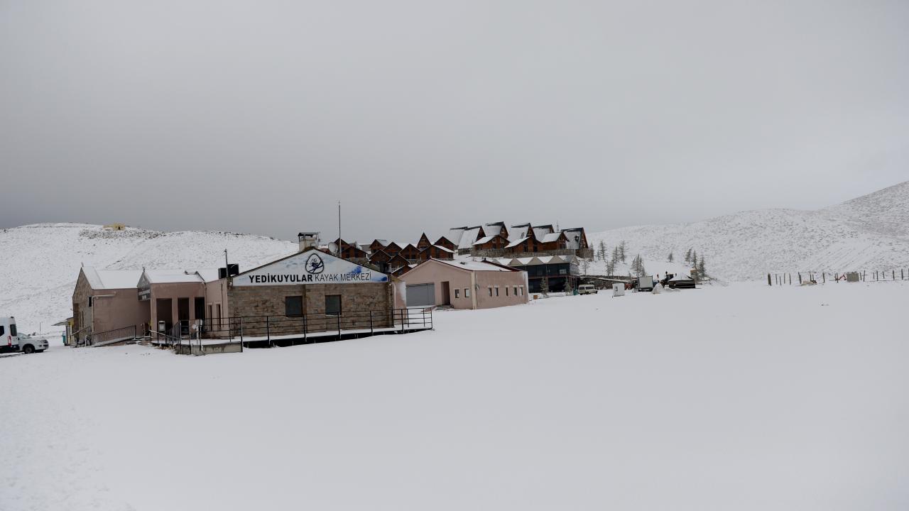 Kahramanmaraş`ta Yedikuyular Kayak Merkezi`nin bulunduğu bölge, mevsimin ilk kar yağışıyla beyaza büründü.