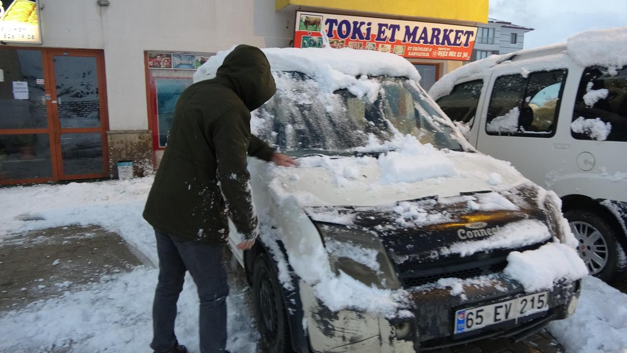 Van`ın Başkale ilçesinde gece başlayan kar yağışı, sabaha kadar sürdü.