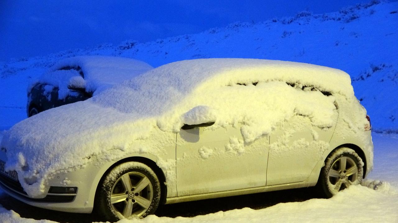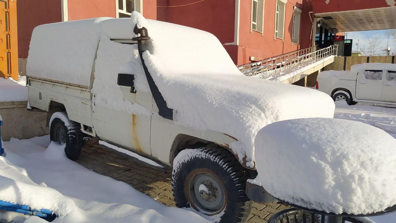 Park halindeki bazı araçların tamamen karla kaplandığı görüldü.