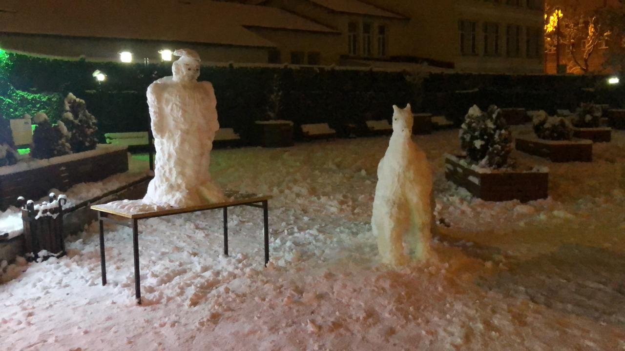 Haydar Aliyev Caddesi’nde bir araya gelen gençler kardan adam yaparak eğelendi.