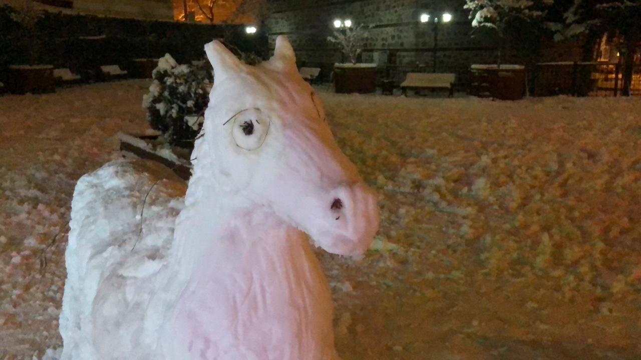 Hava sıcaklığının kar yağışıyla birlikte 1 dereceyi gördüğü Kars’ta vatandaşlar sokaklara akın etti.