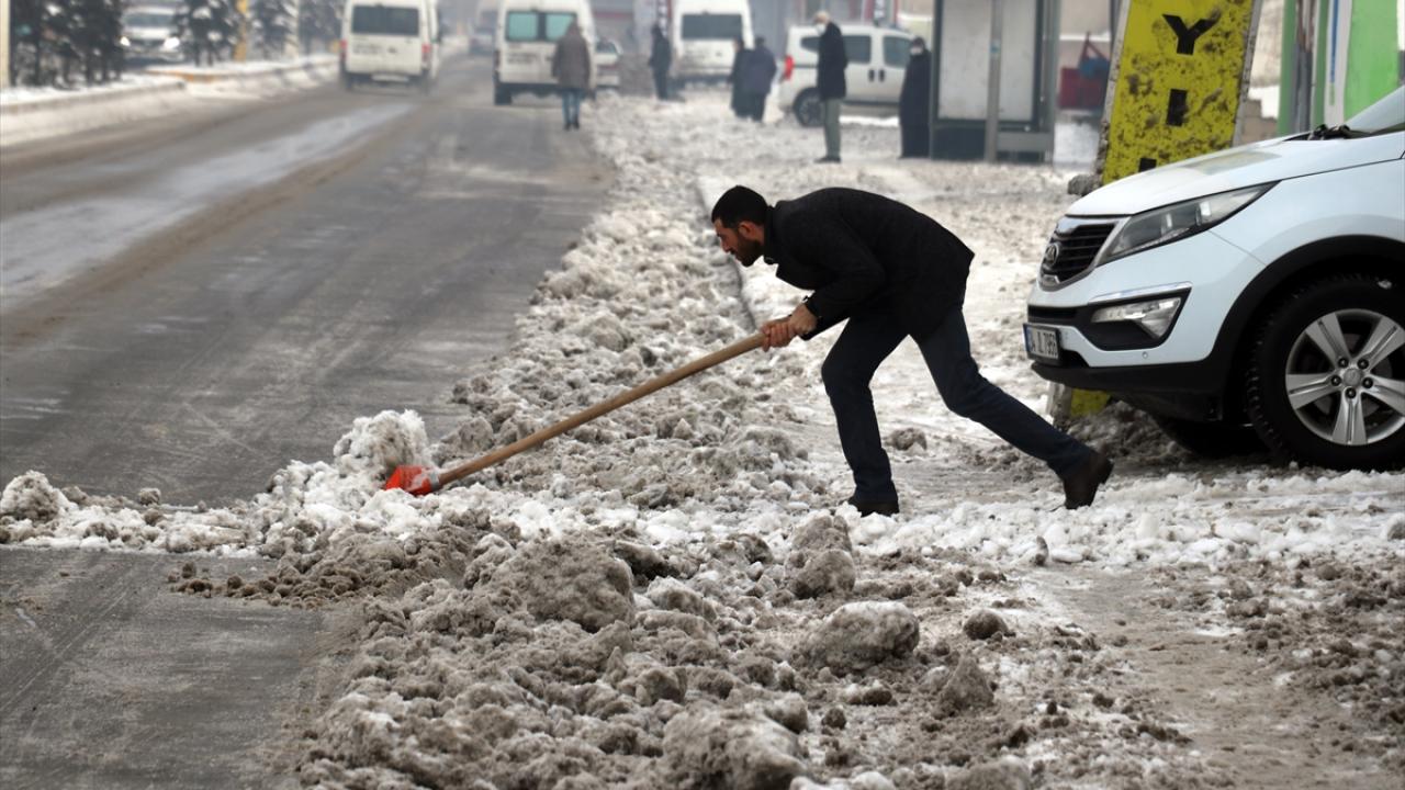 Sabah iş yerlerini açan esnaf, kapılarının önünde biriken karları küreklerle temizlerken, kara hazırlıksız yakalanan bazı sürücüler ise yollarda mahsur kalmaları kameralara yansıdı.