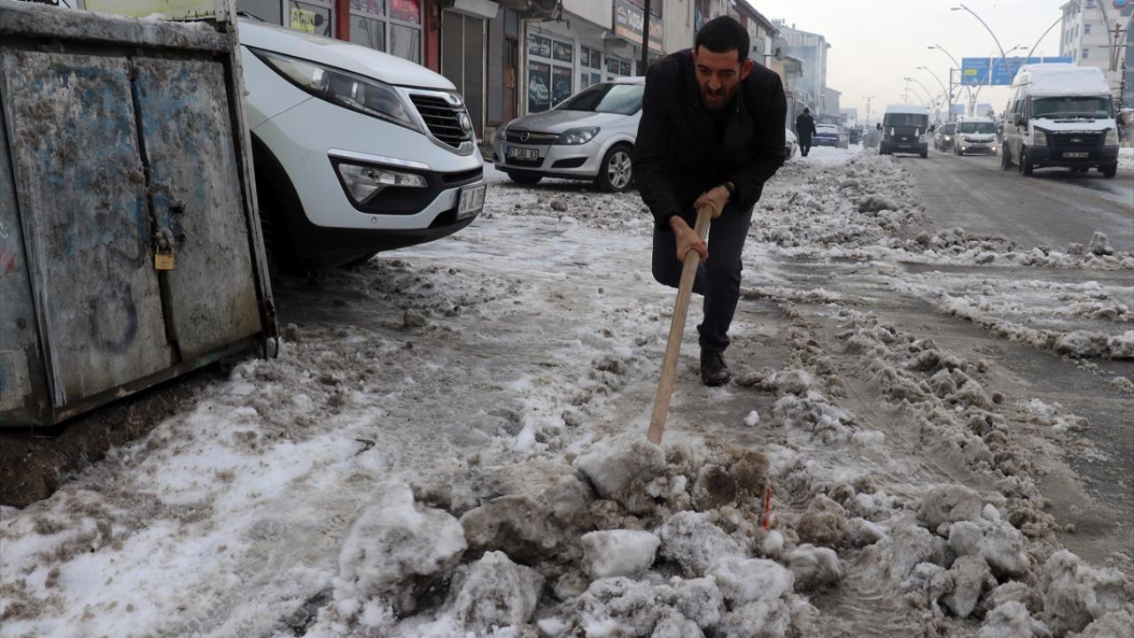 Ağrı`da da gece başlayan ve sabaha doğru etkisini kaybeden yağış sonrası, cadde ile sokaklar karla kaplandı.