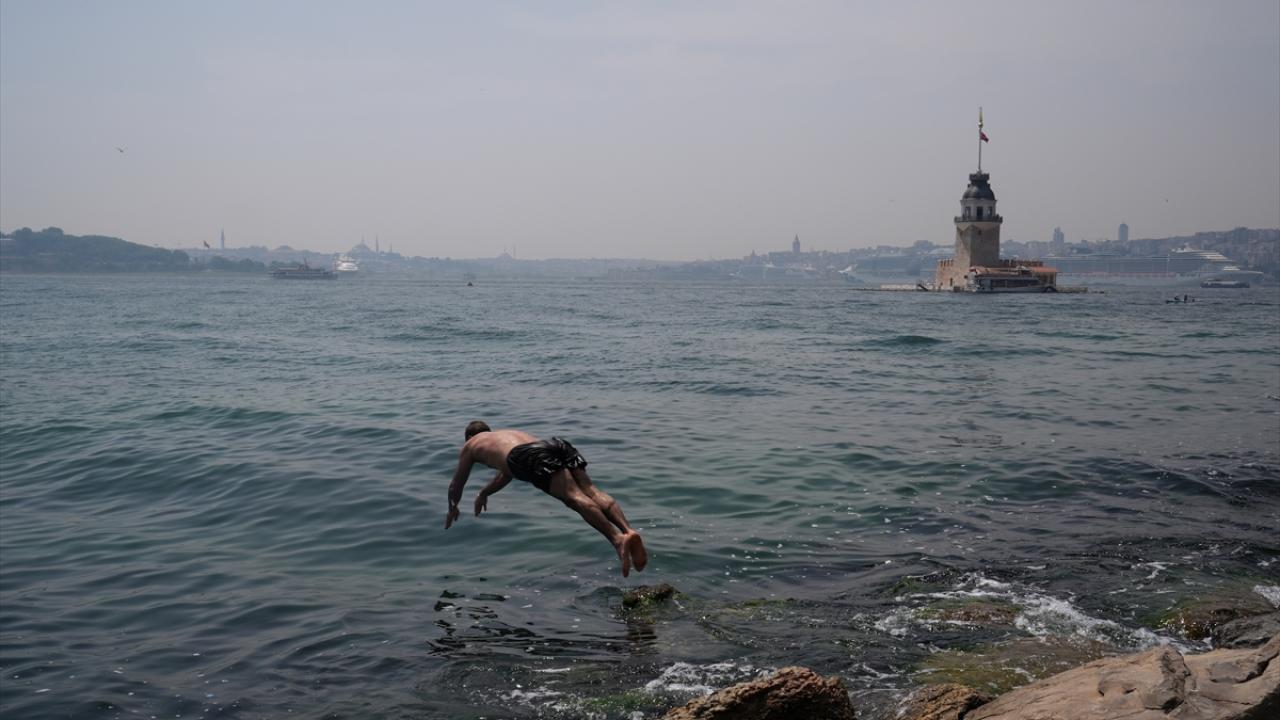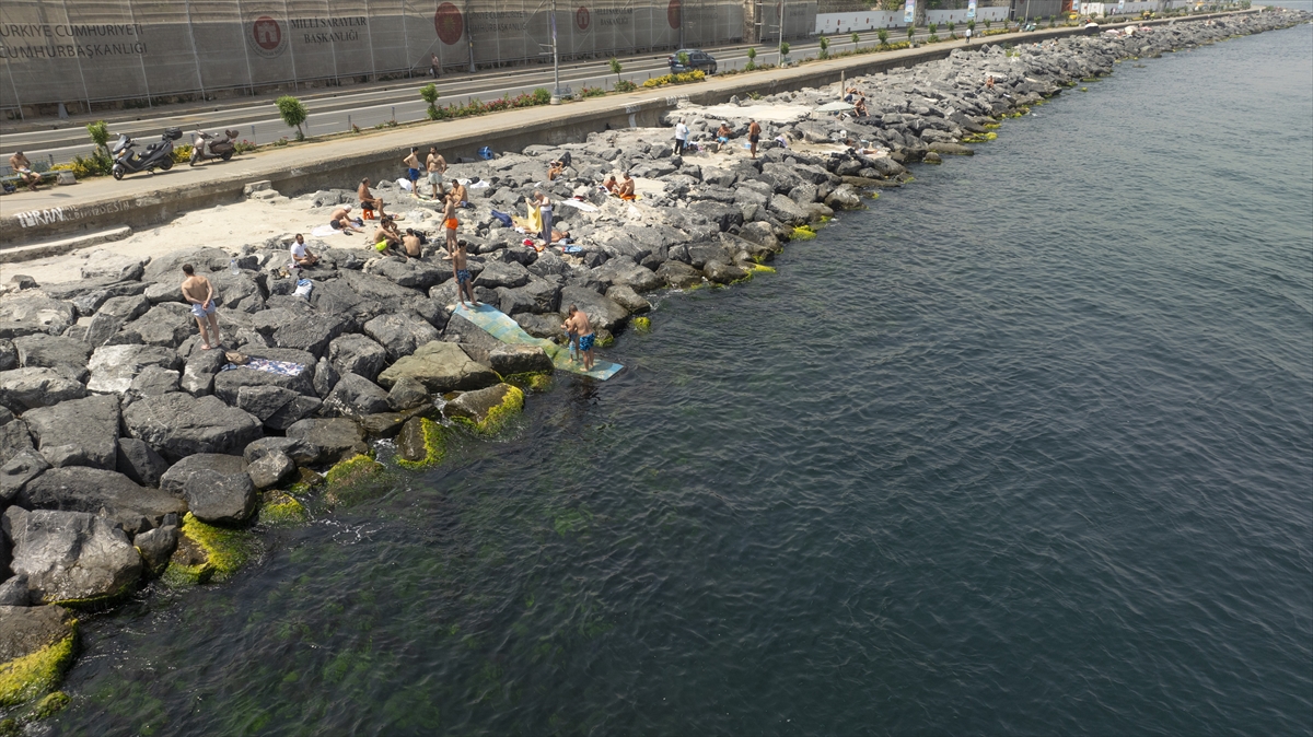 Bazı vatandaşlar, Sarayburnu sahilde denize girerek serinlemeye çalıştı.