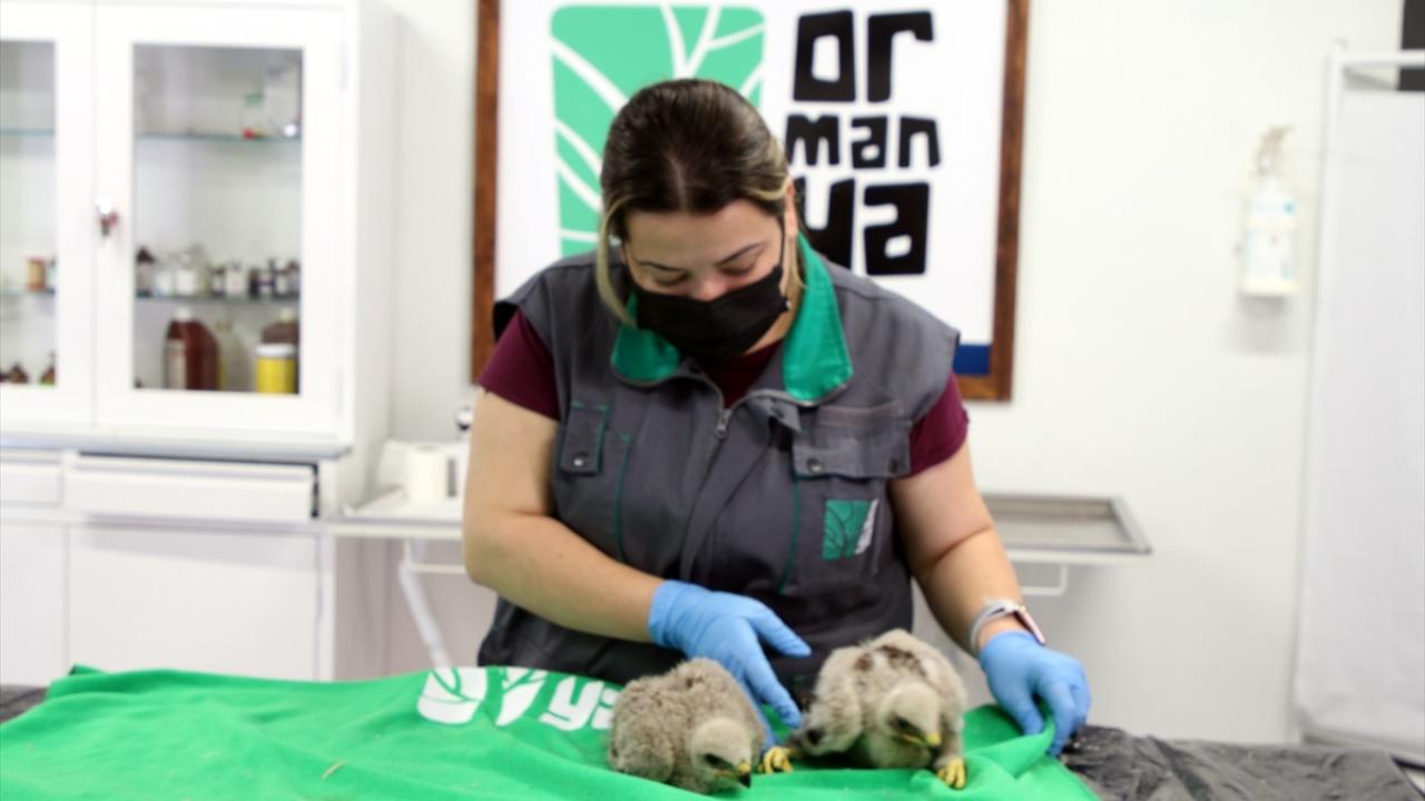 Koruma altına alınan kızıl şahinlerin, veteriner hekimlerce yapılan muayenesinde genel sağlık durumunun iyi olduğu belirlendi.