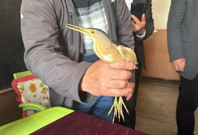 Genelde sulak alanlarda yaşayan ve nesli tükenmekte olan kuşun, hava şartları nedeniyle bitkin düştüğü belirtildi.