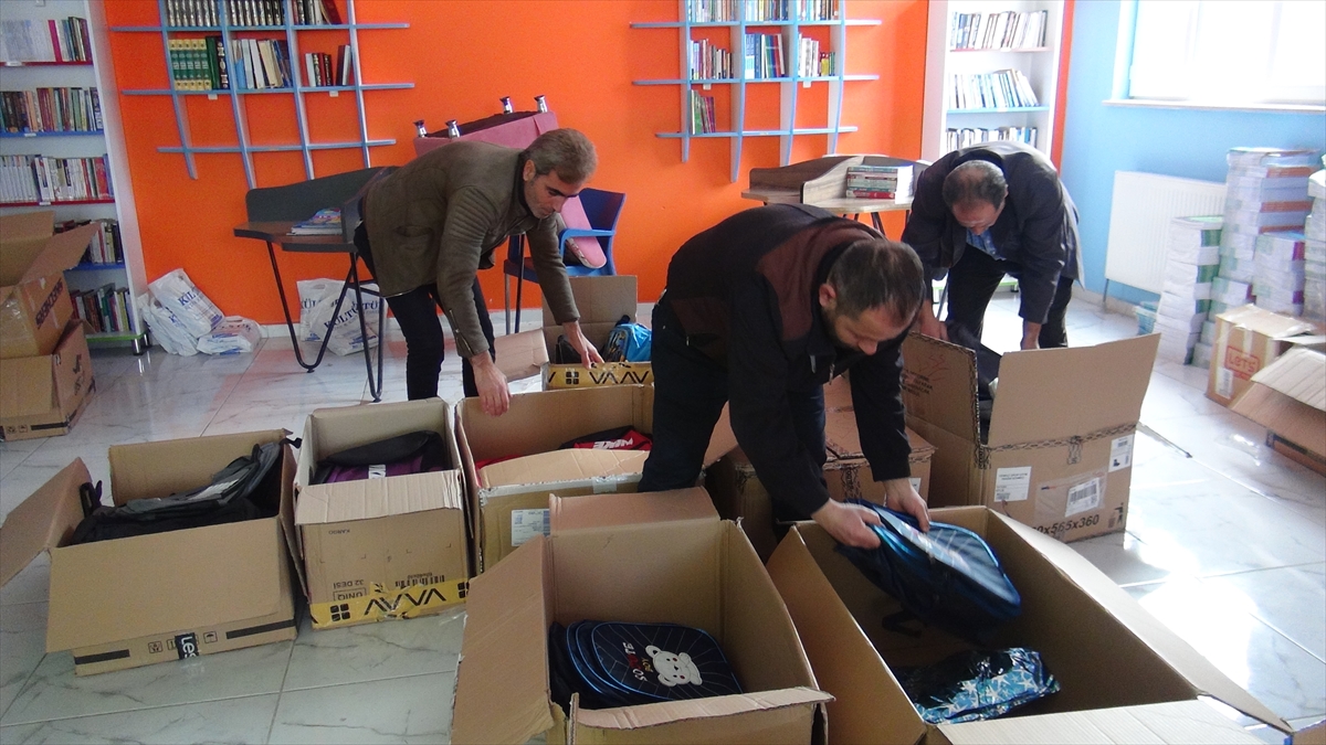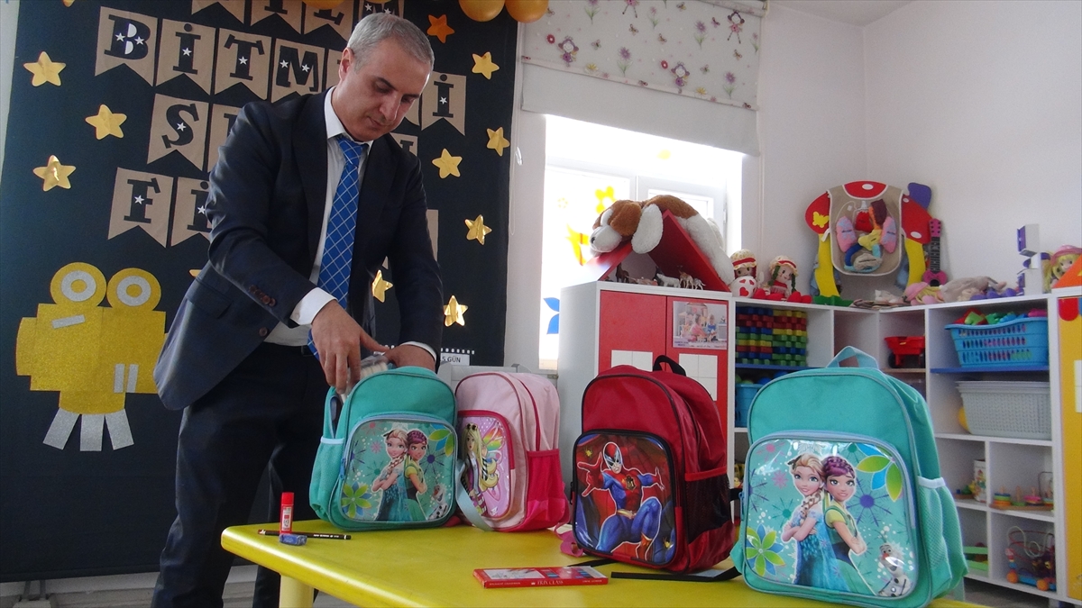 Yeni bir okulda yeni arkadaşlarıyla eğitime başlayan öğrencilere çanta ve kırtasiye malzemelerinden oluşa hediye paketleri dağıtıldı.