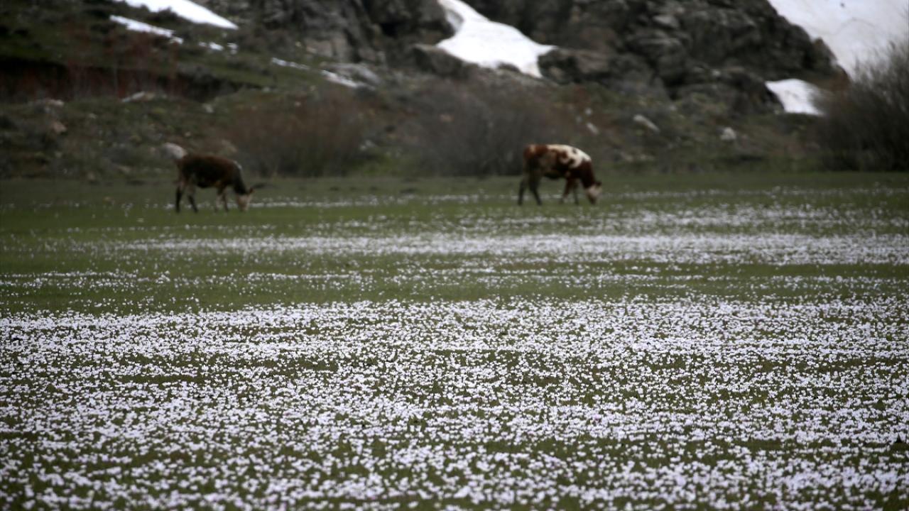 Kış mevsiminin uzun ve çetin geçtiği kentte havanın ısınmaya başlamasıyla Güzeldere Ovası`nda beyaz, pembe ve mor renkli çiğdemler açtı.