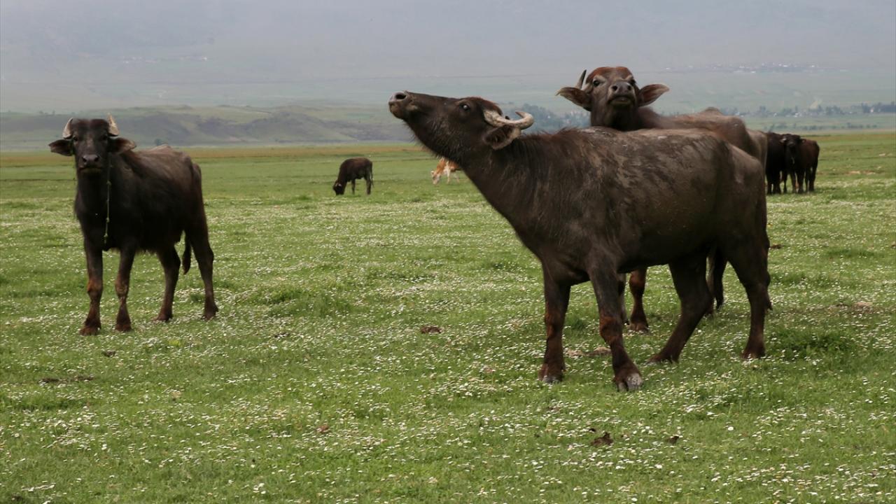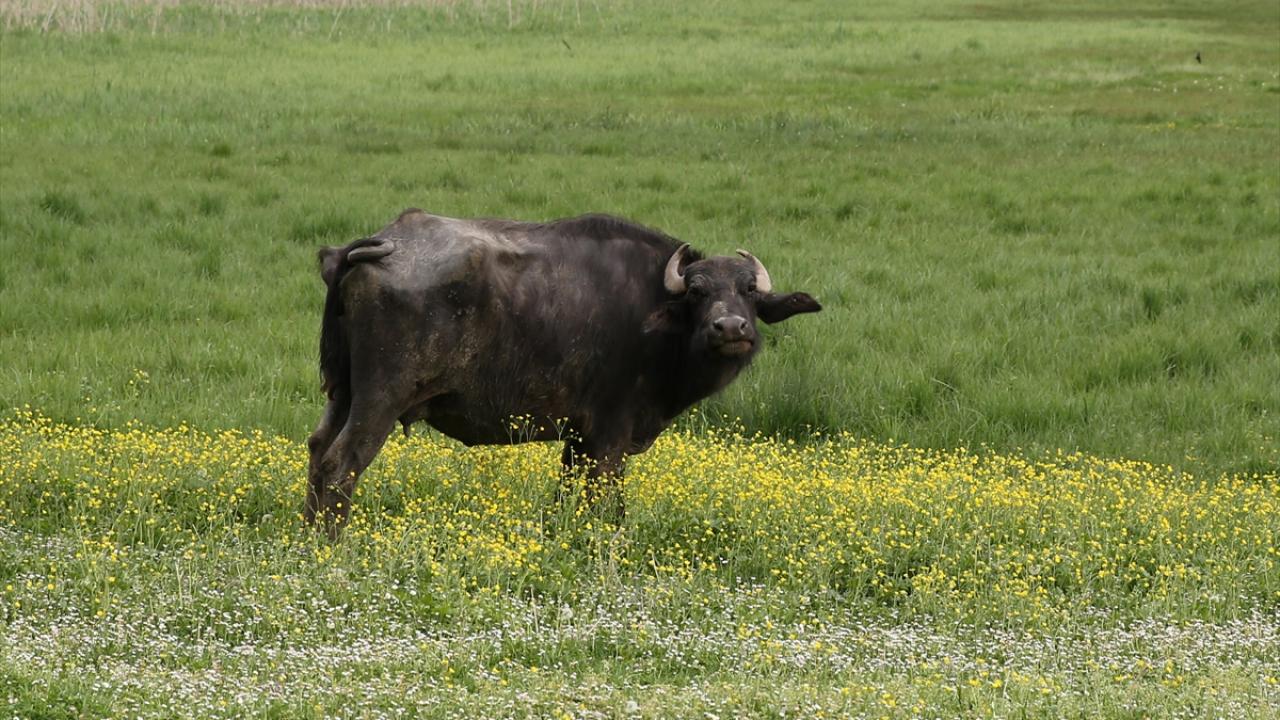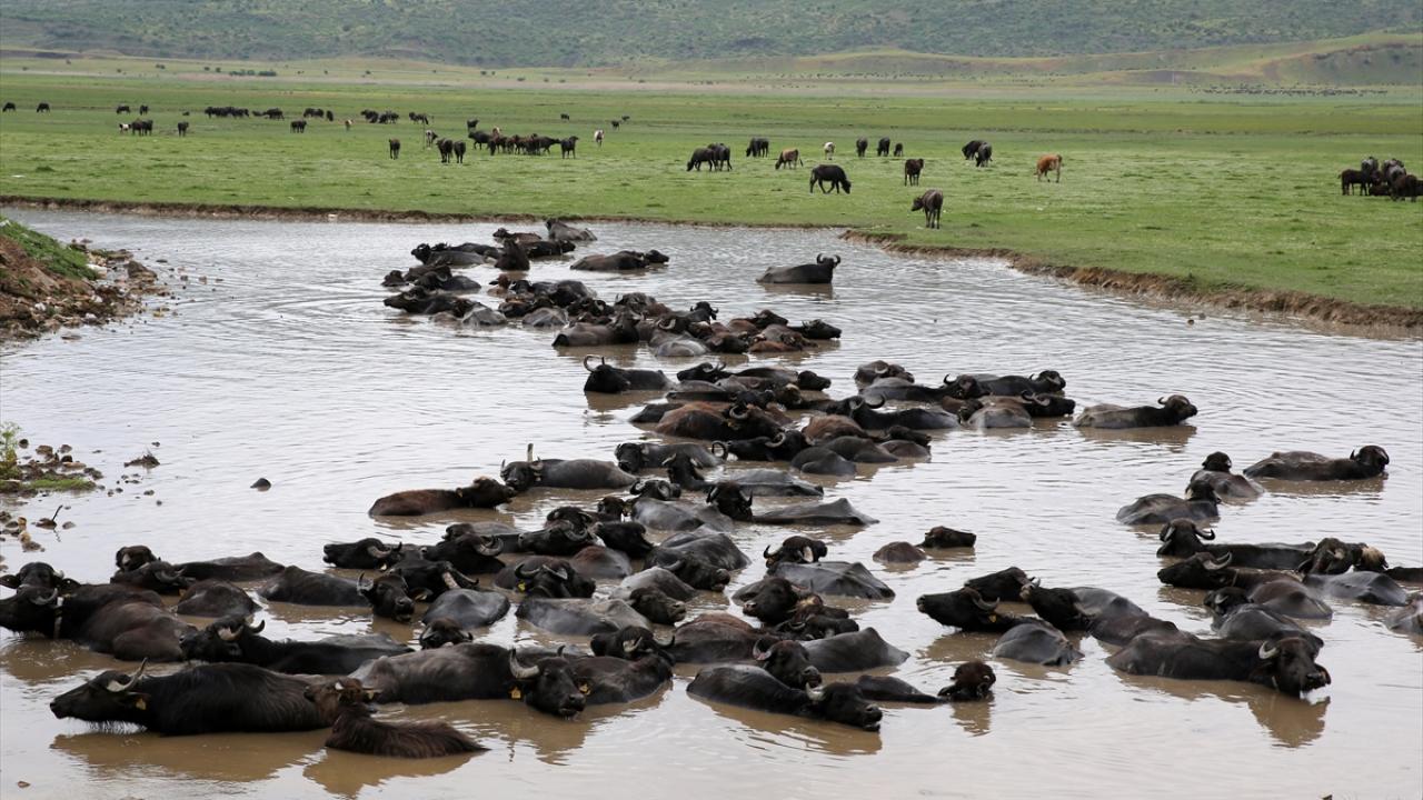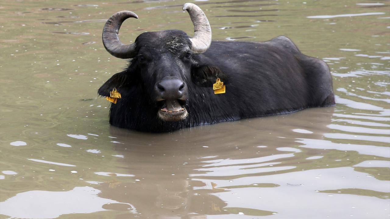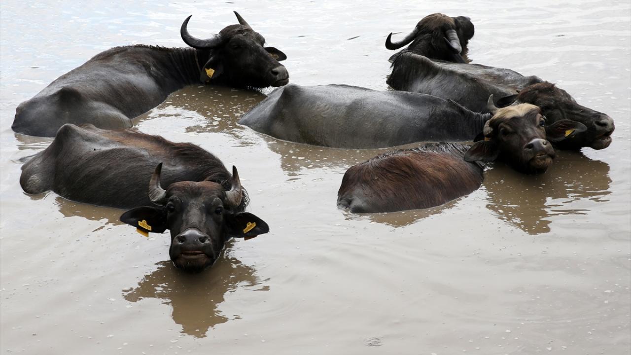 Türkiye`nin en önemli sulak alanlarına sahip ilçede mandalar, İron Sazlığı ile yaklaşık 40 derece sıcaklığındaki suya sahip Budaklı Kaplıcası`nın bulunduğu alanda besleniyor.