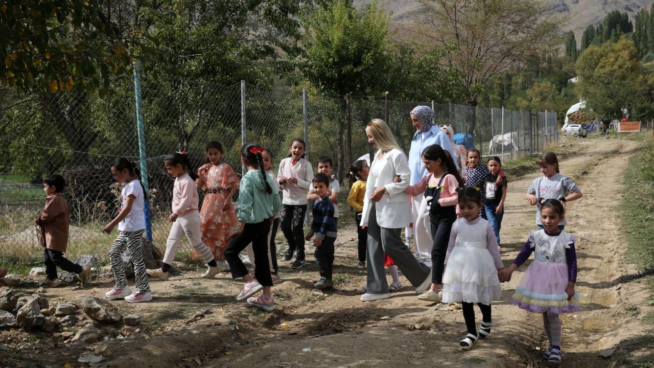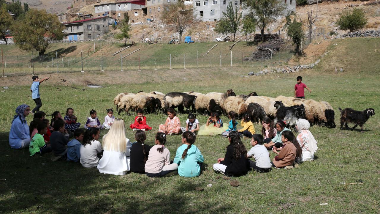 Bitlis'in Hizan ilçesine bağlı Oymapınar köyünde görev yapan öğretmenler, derslerin bir bölümünü evlerin bahçelerinde ve açık alanda işleyerek öğrencilerini hem doğayla buluşturuyor hem de çevre bilinci edinmelerini sağlıyor.