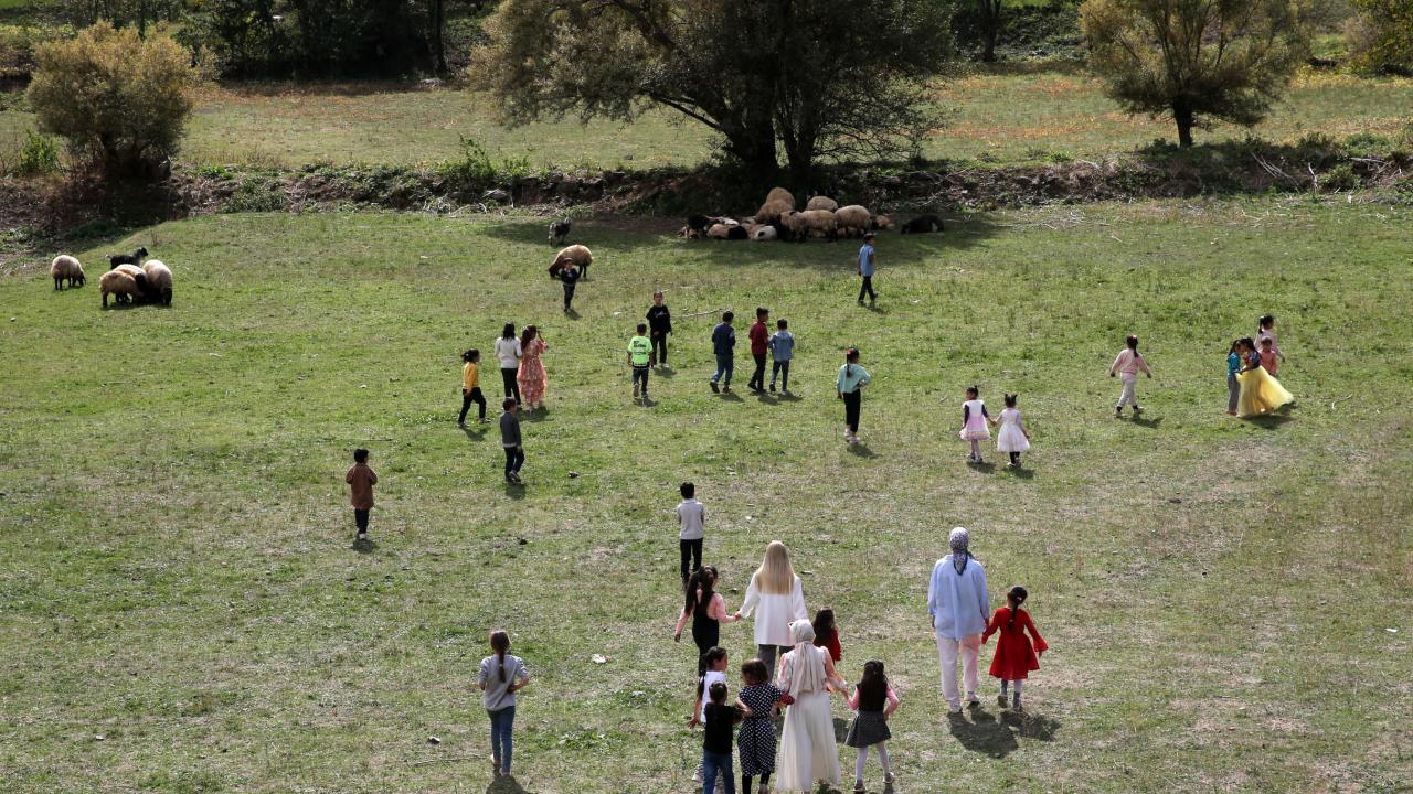Bitlis'te öğretmenler öğrencileriyle doğada ders yapıyor