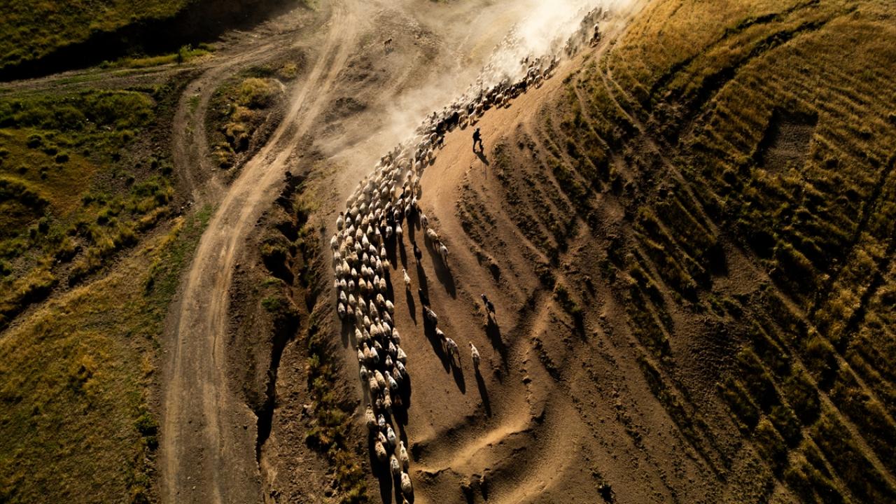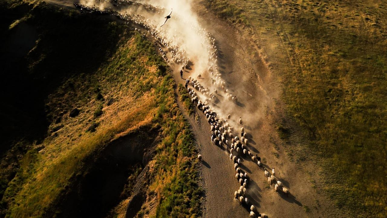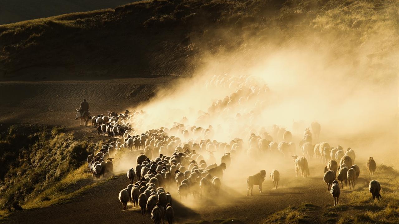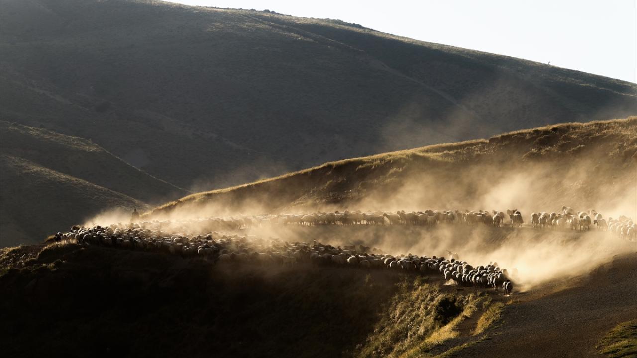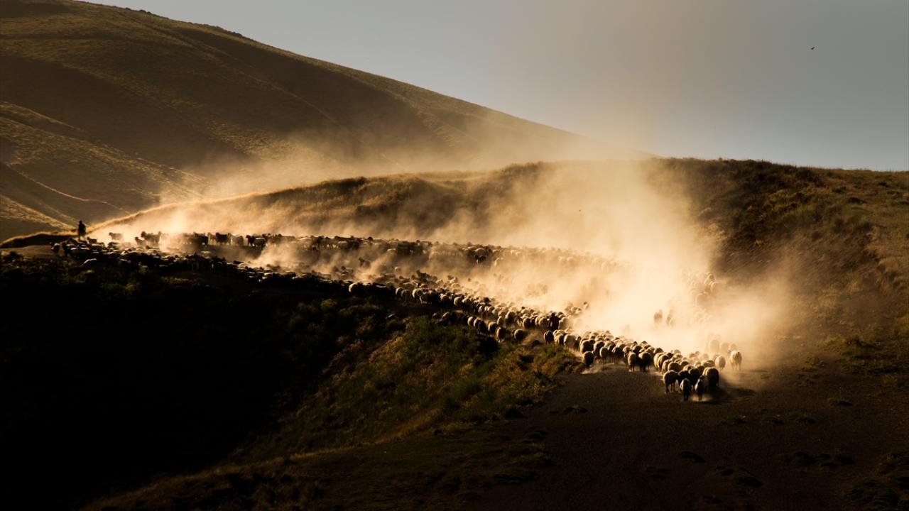 Koyun sürülerinin çıkardığı tozlar, gün batımı ile birlikte görsel şölen oluşturuyor.