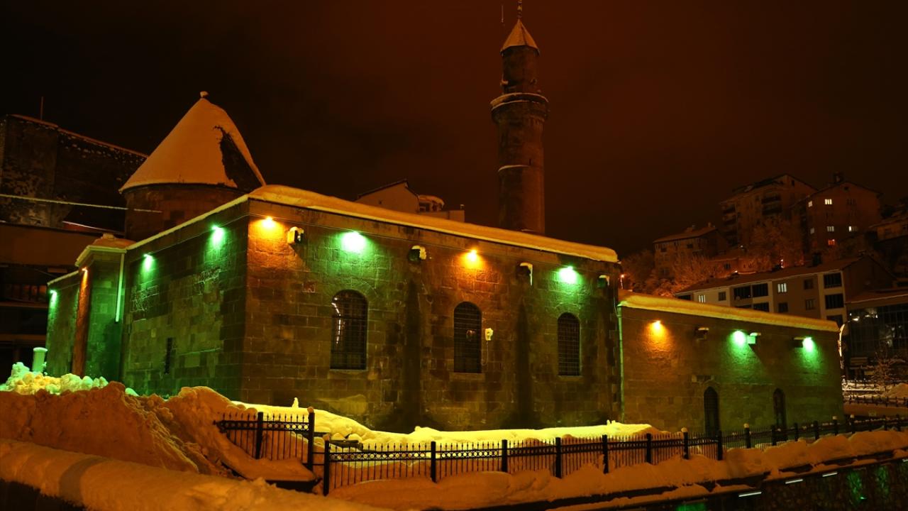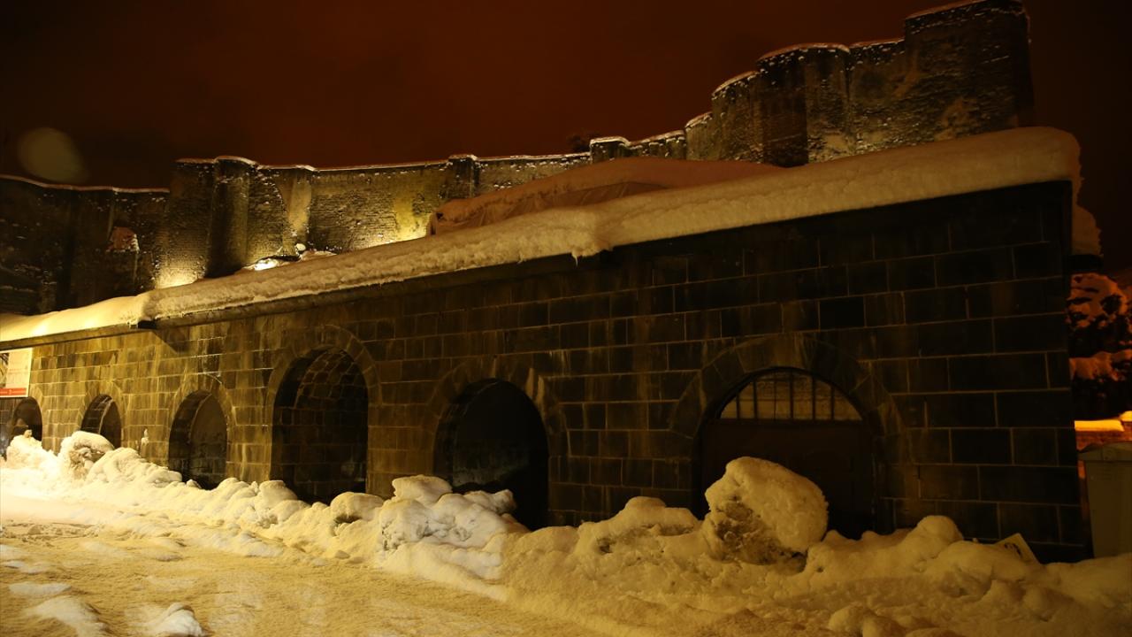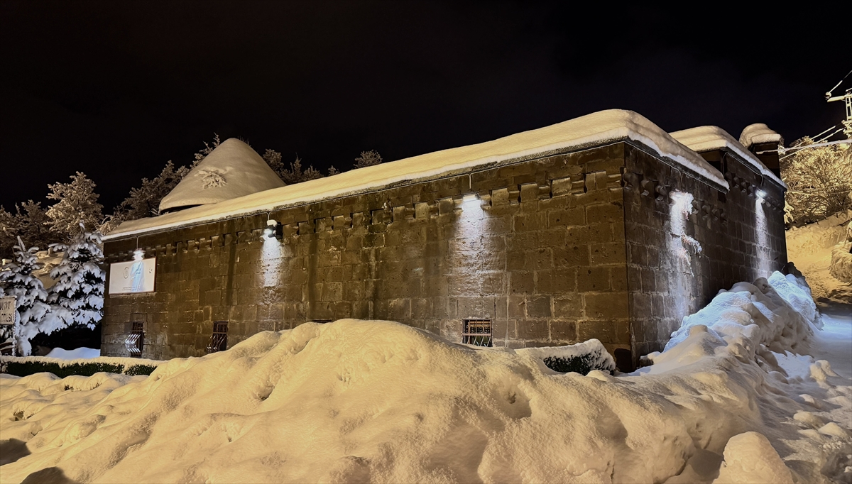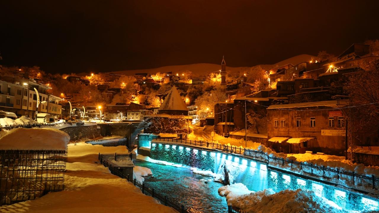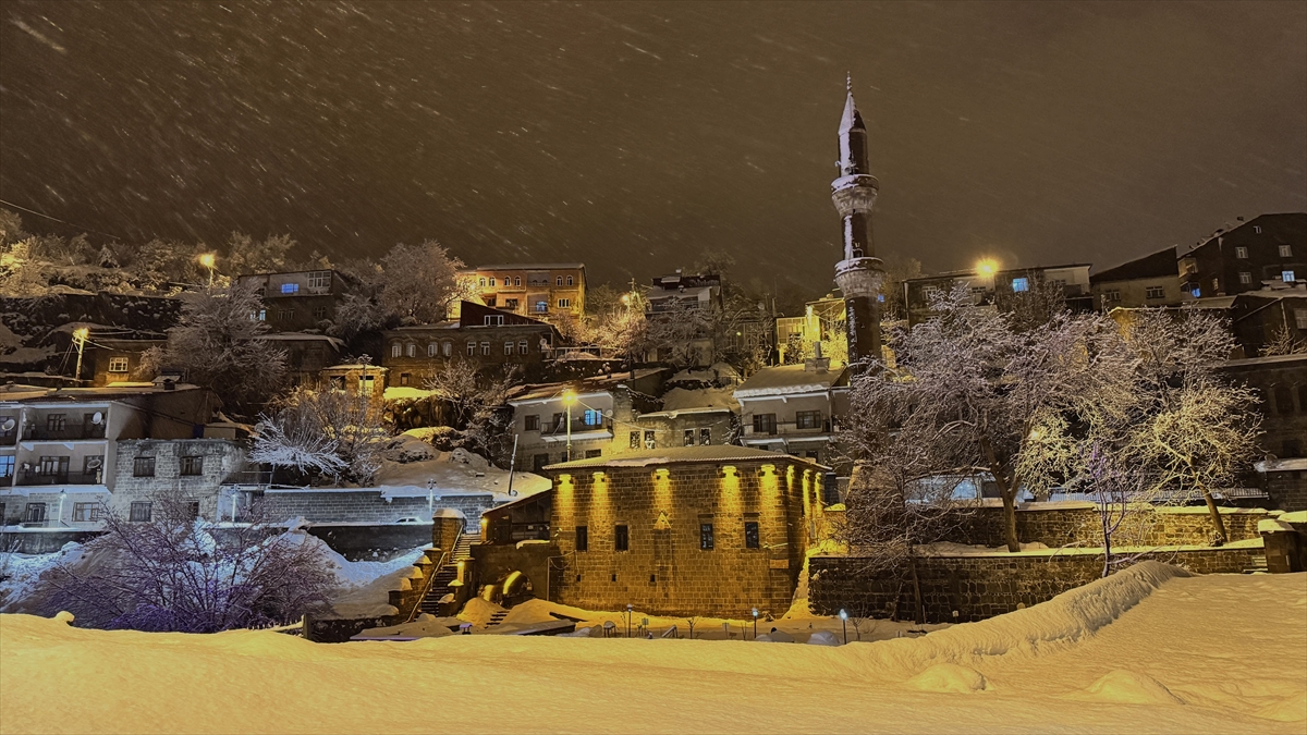 İl merkezinde "Dere Üstü Islah" ile "Sokak Sağlıklaştırma" projeleri kapsamında gün yüzüne çıkarılarak restore edilen ve ardından ışıklandırılan tarihi mekanlar karla kaplandı.