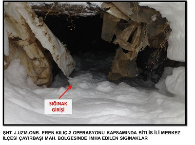 Bitlis'te PKK'lı teröristlere yönelik operasyonda tespit edilen sığınakların kullanılamaz hale getirildiği bildirildi.