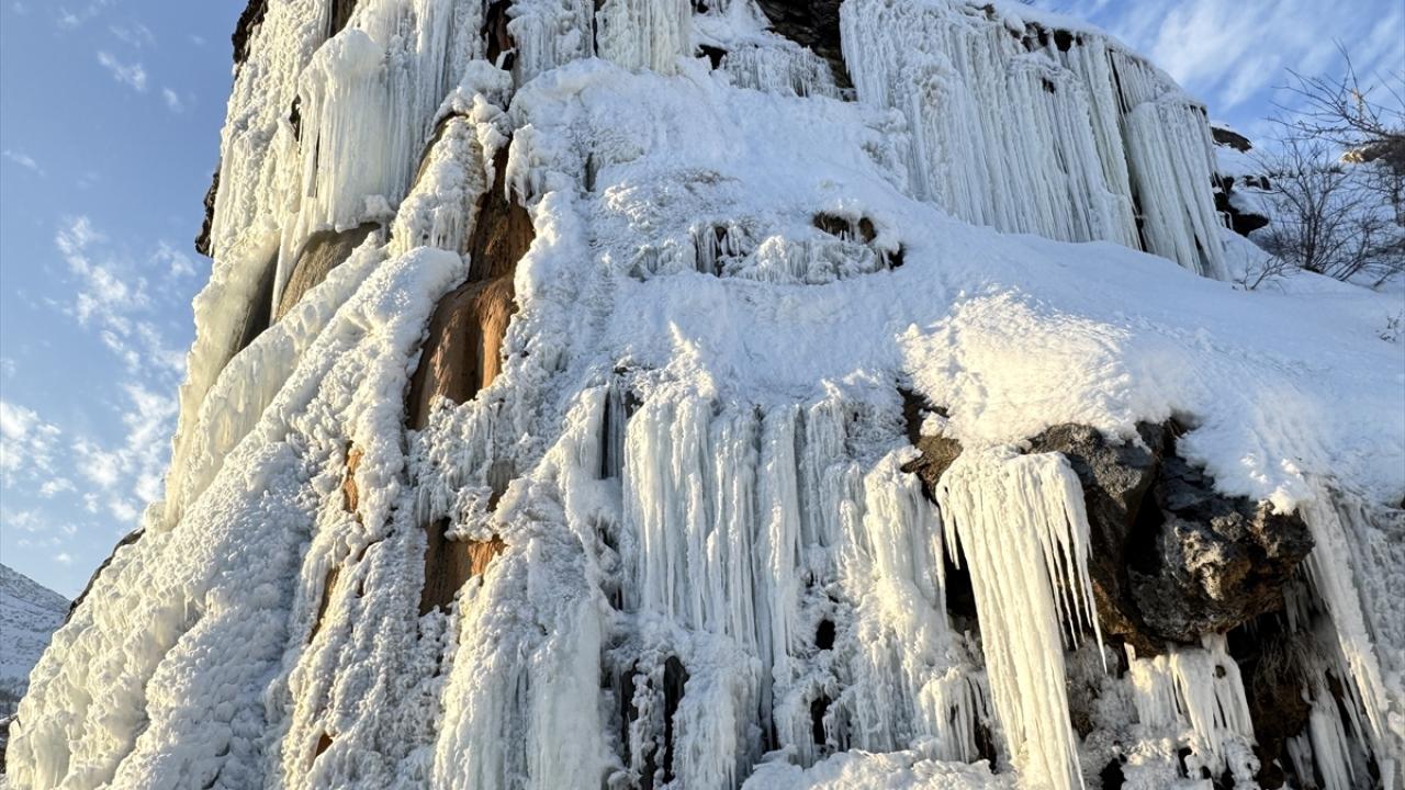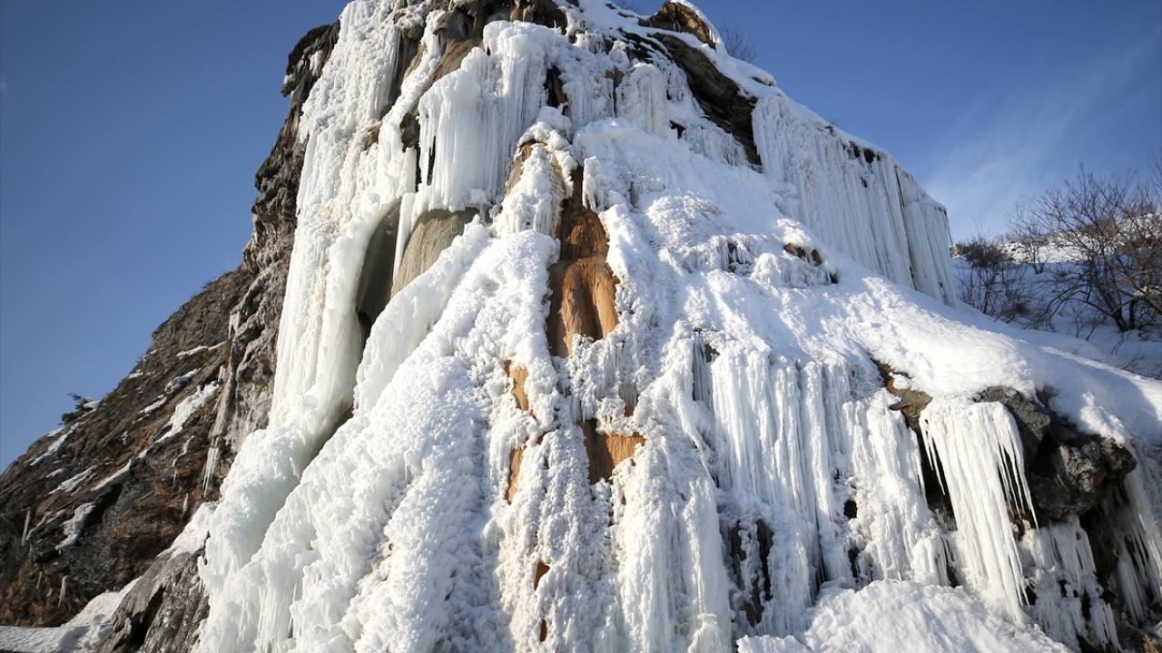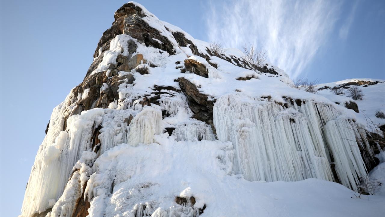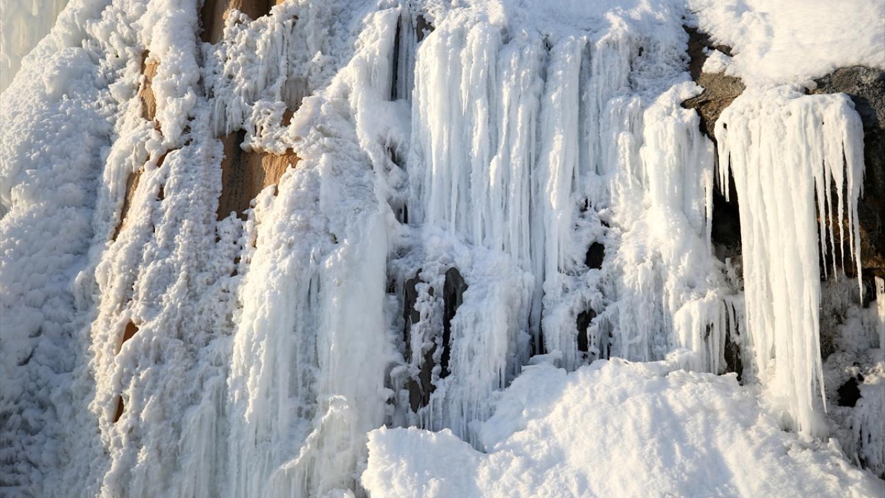 Bitlis'te karın ardından etkili olan dondurucu soğuk nedeniyle Deliklitaş'ta buz sarkıtları oluştu.