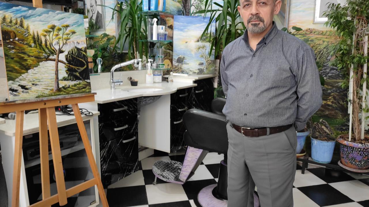 Onlarca bitkiyi ve resmi barındıran dükkanın sahibi ressam berber Tanrıverdi Taşdemir, "Baktım, adamlar benden daha iyi berber değiller. Ustalar ama ben onlardan daha iyi usta olduğumu düşündüm. Bizim patron beni çok sevdiği için komşu dükkana gitmeme müsaade etmedi. Zorla müsaade aldık, berberliğe başladık." dedi.