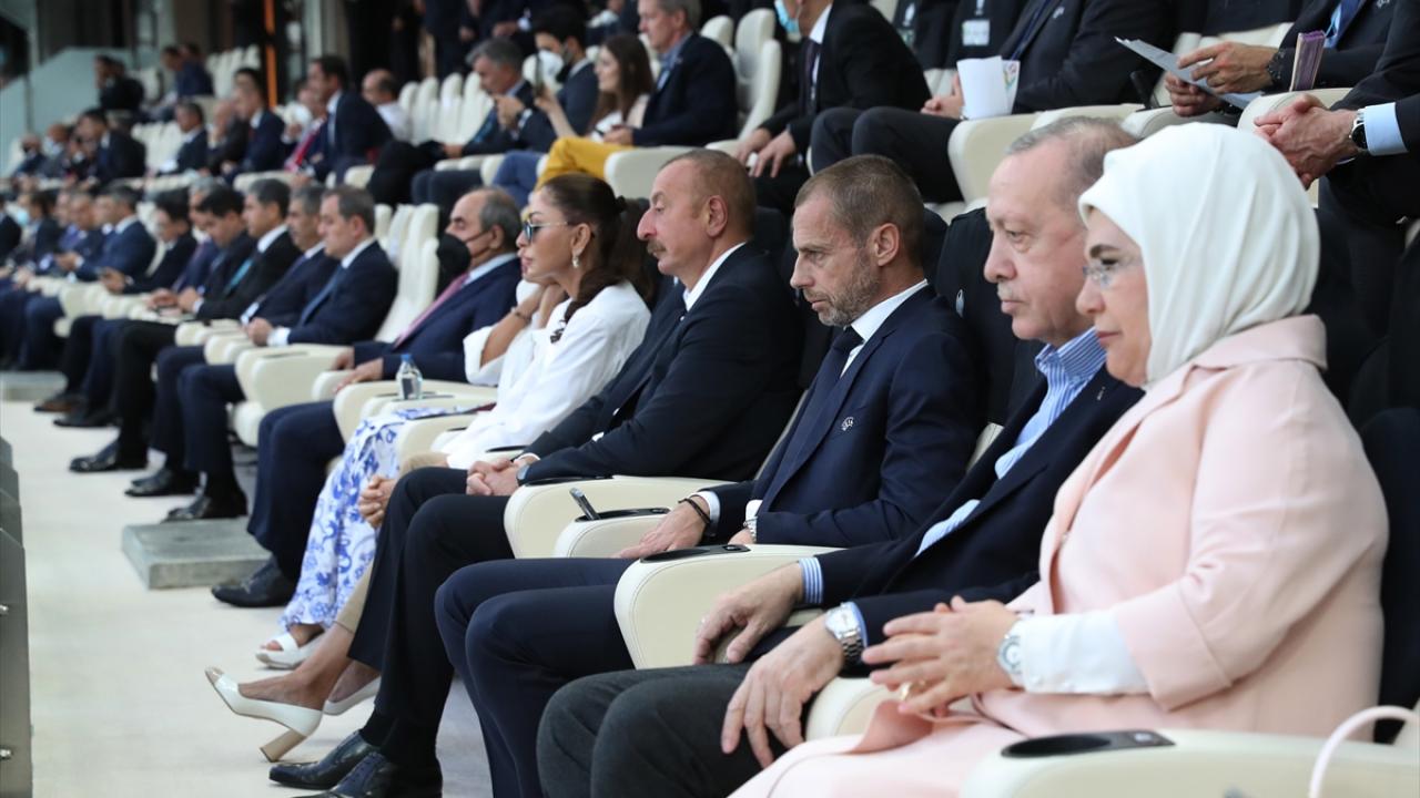 Erdoğan, karşılaşmayı Azerbaycan Cumhurbaşkanı İlham Aliyev ile birlikte takip etti. Erdoğan`ın yanı sıra Gençlik ve Spor Bakanı Mehmet Muharrem Kasapoğlu, Türkiye Futbol Federasyonu Başkanı Nihat Özdemir ile TFF yöneticileri de mücadeleyi tribünden izledi.