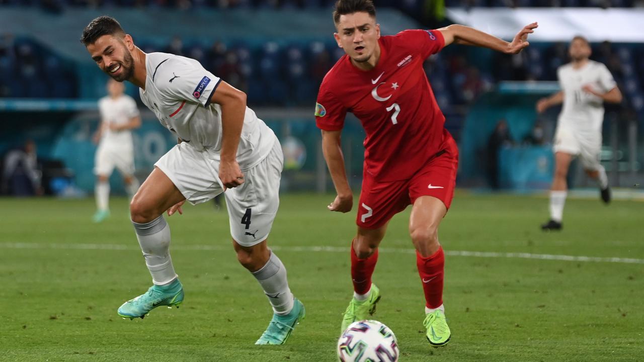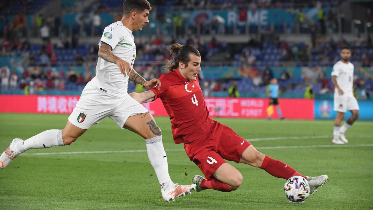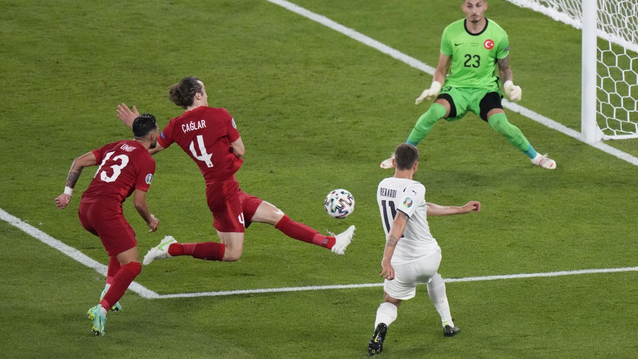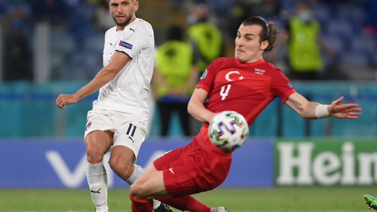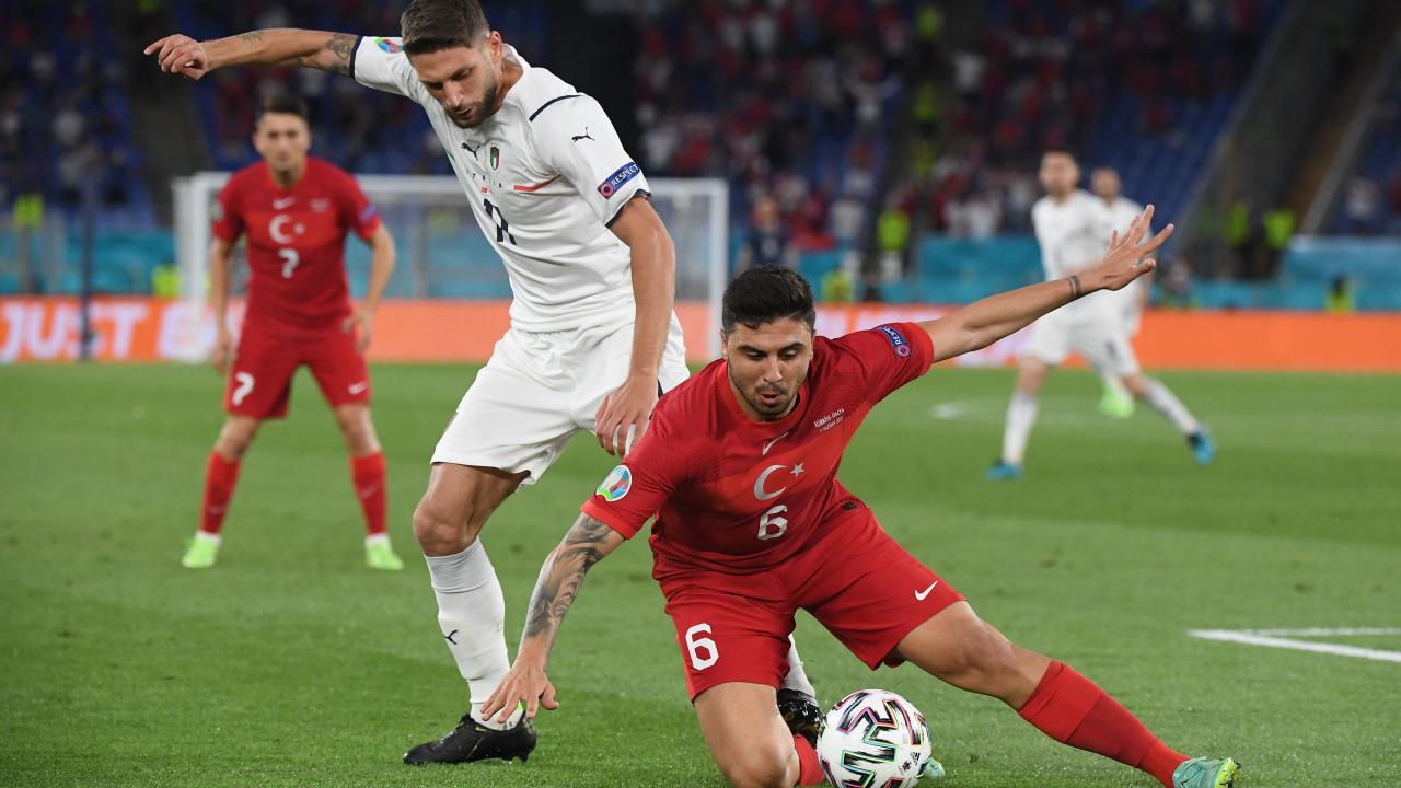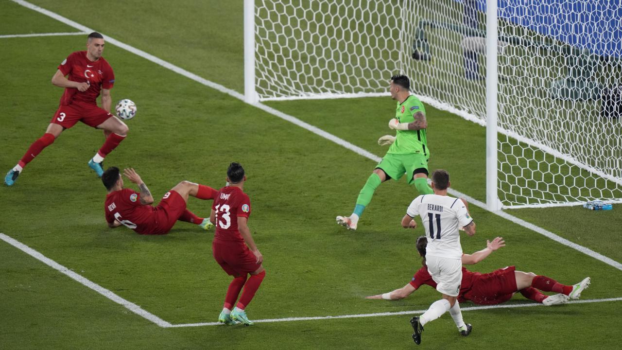53`üncü dakikada İtalya öne geçti. Barella`nın pasıyla sağ kanattan ceza sahasına giren Berardi, Umut Meraş`tan sıyrıldıktan sonra sert bir orta kesti. Merih Demiral`a çarpan top ağlara gitti: 0-1.