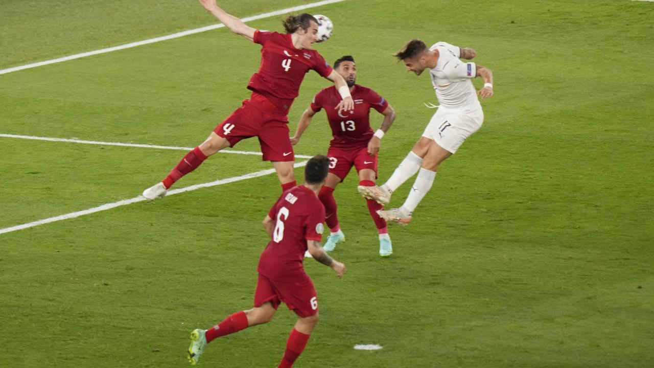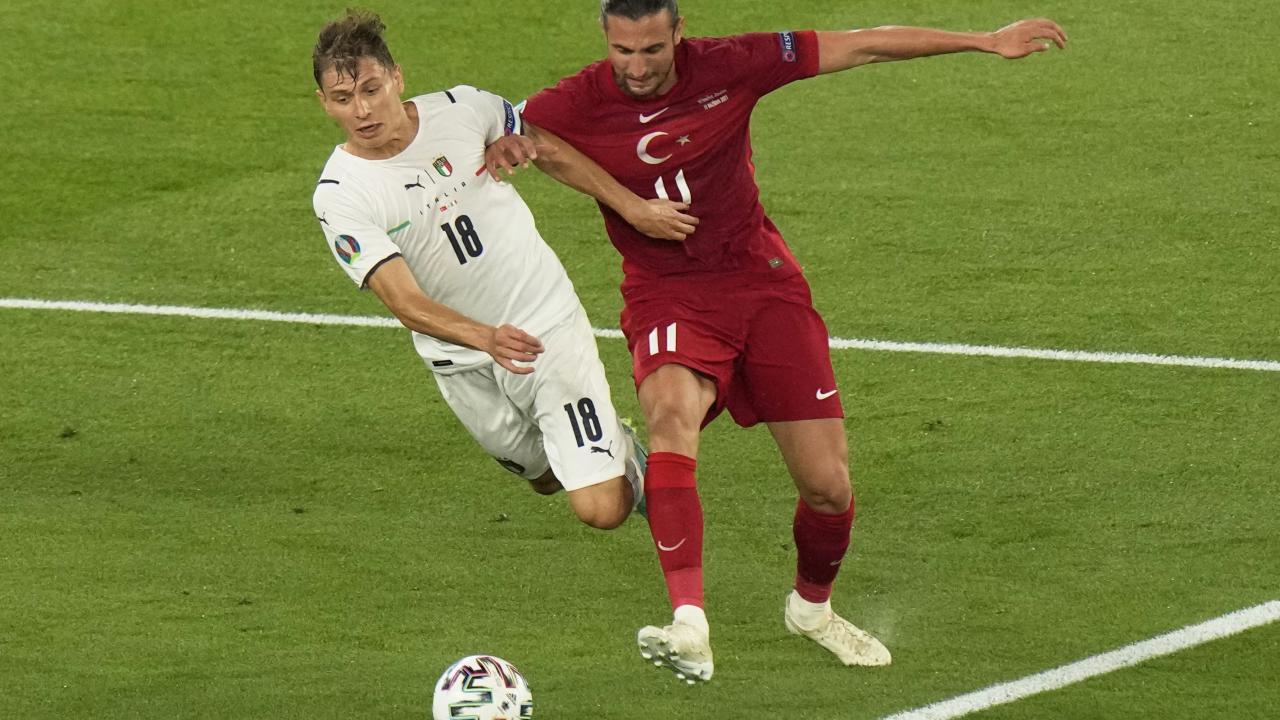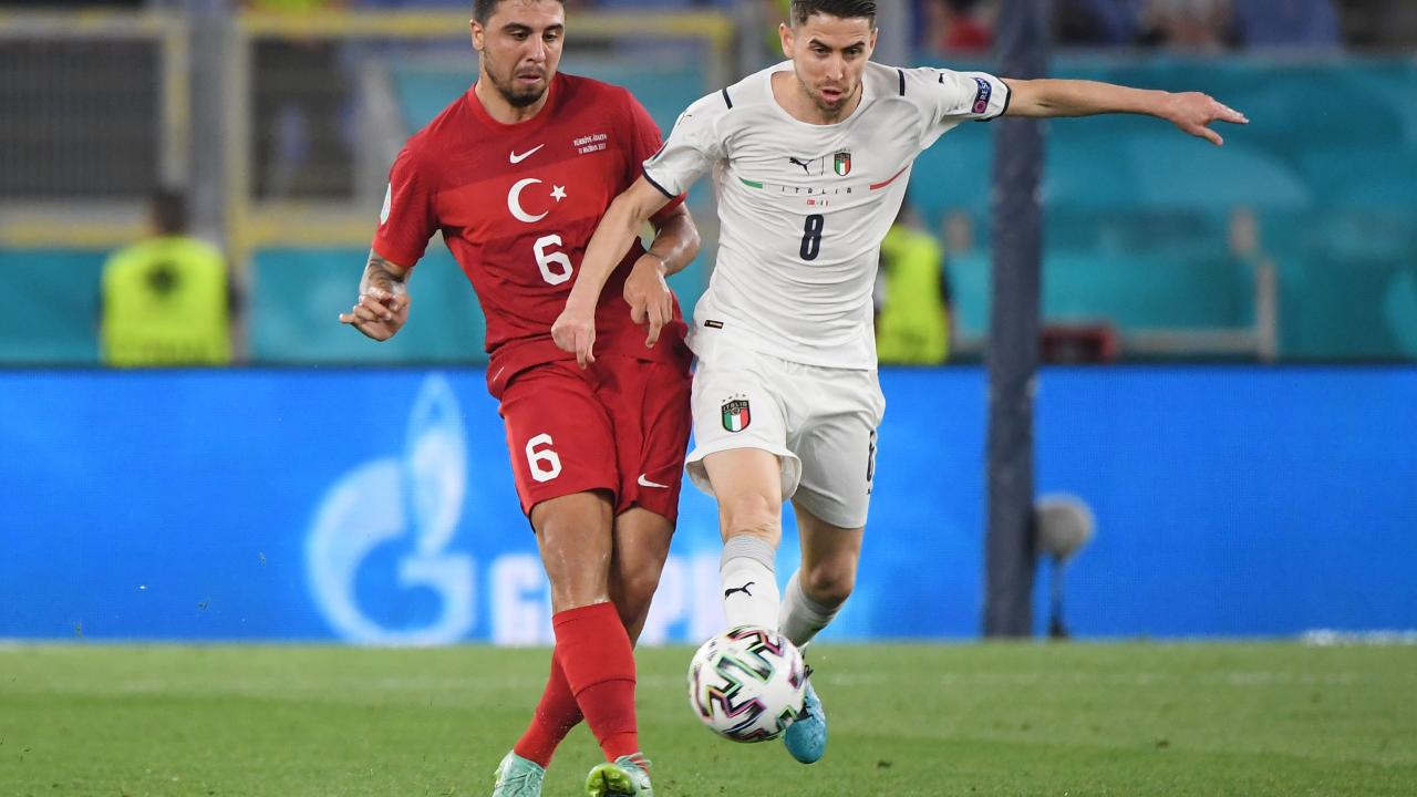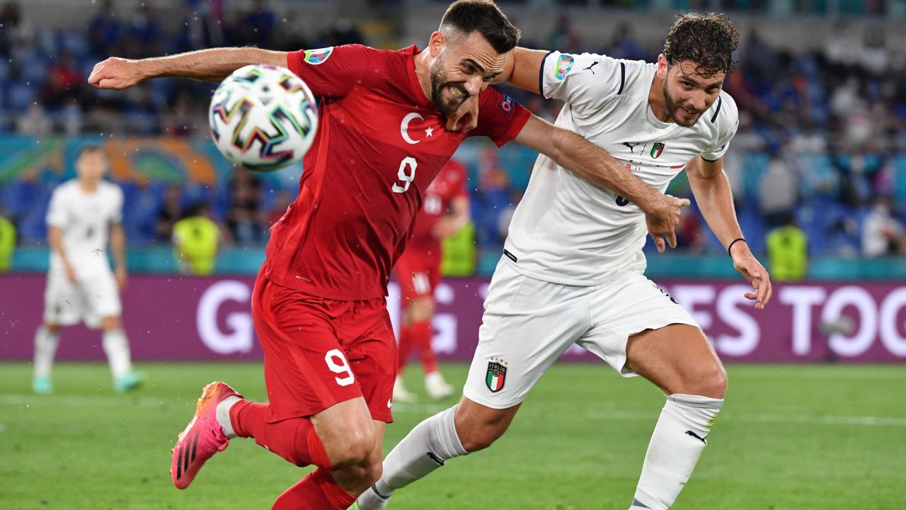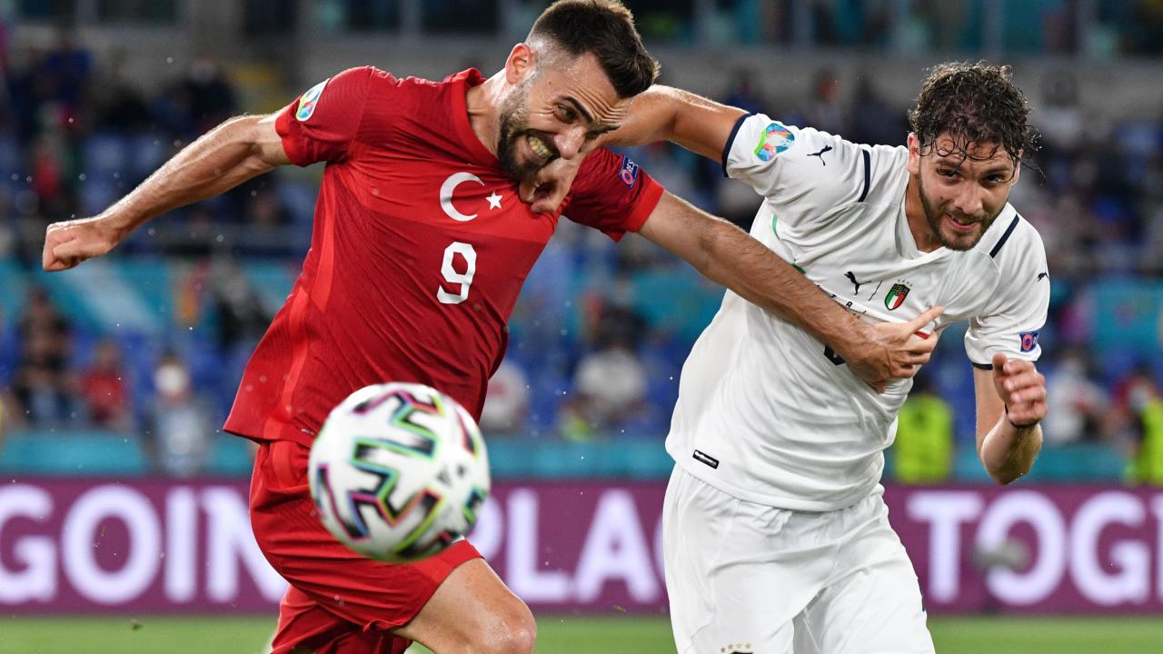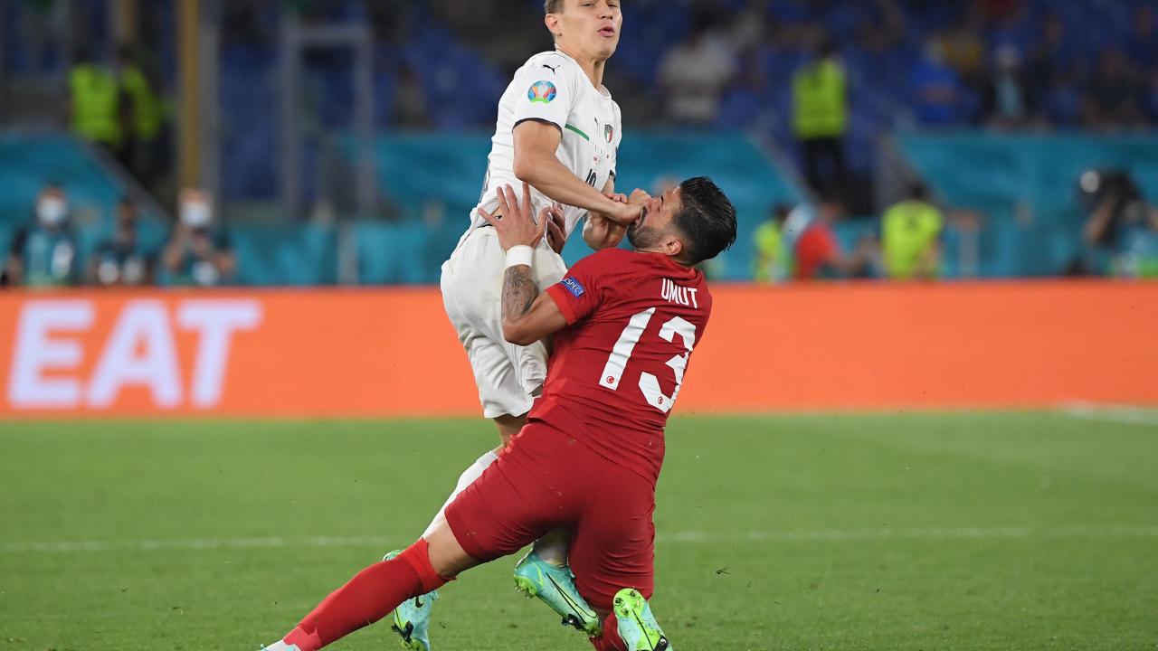 53`üncü dakikada İtalya öne geçti. Barella`nın pasıyla sağ kanattan ceza sahasına giren Berardi, Umut Meraş`tan sıyrıldıktan sonra sert bir orta kesti. Merih Demiral`a çarpan top ağlara gitti: 0-1.